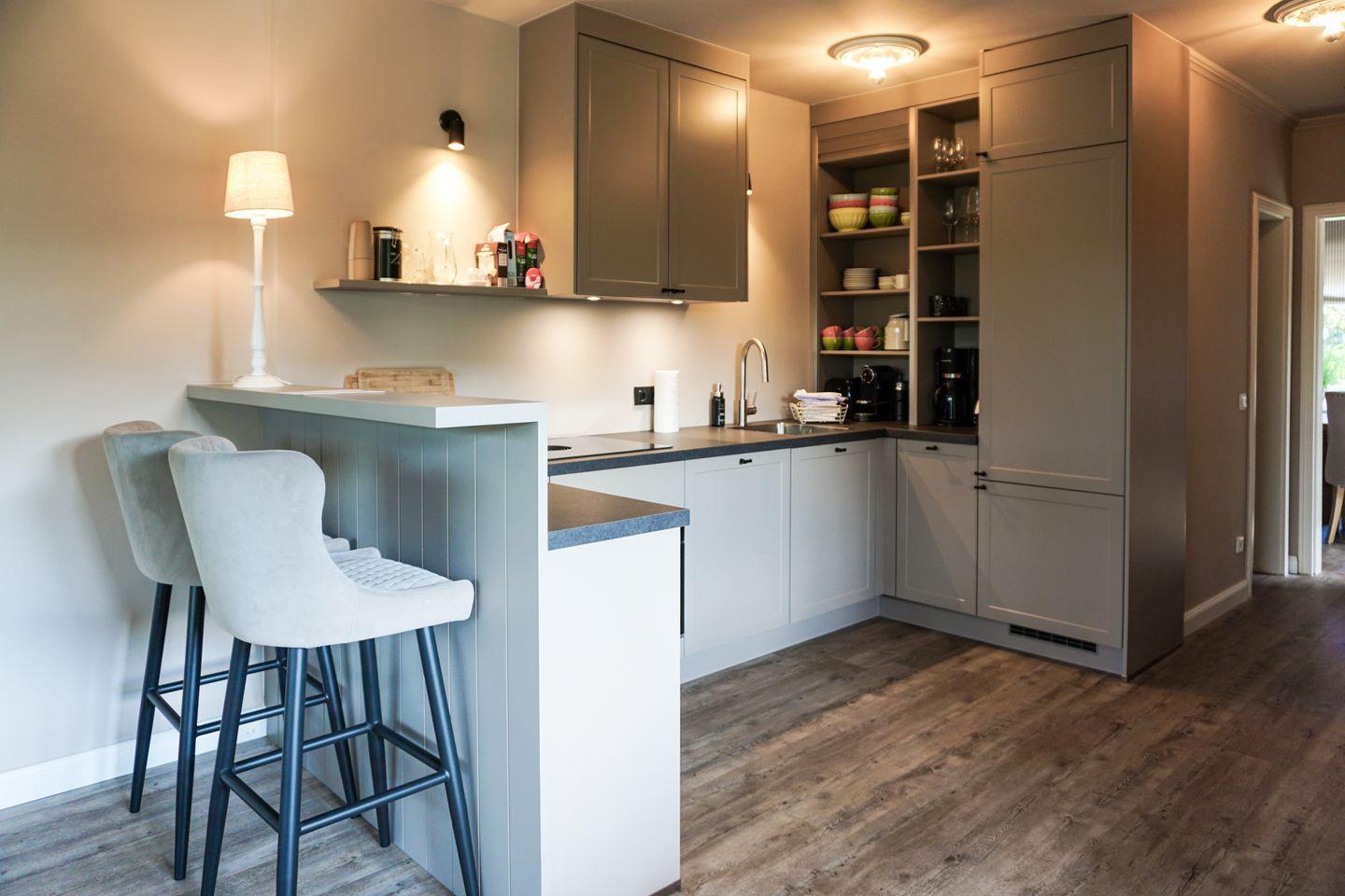 Tresen abgetrennte Küche, in welcher auch eine Nespresso-Maschine auf Sie wartet. Das separate Esszimmer bietet Platz genug für eine Großfamilie und ist wie auch das Wohnzimmer