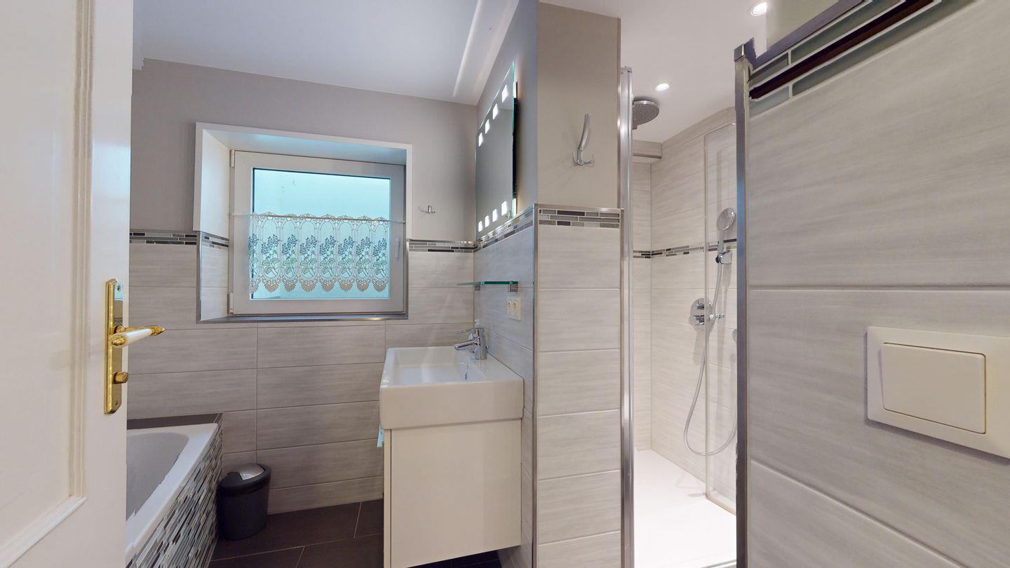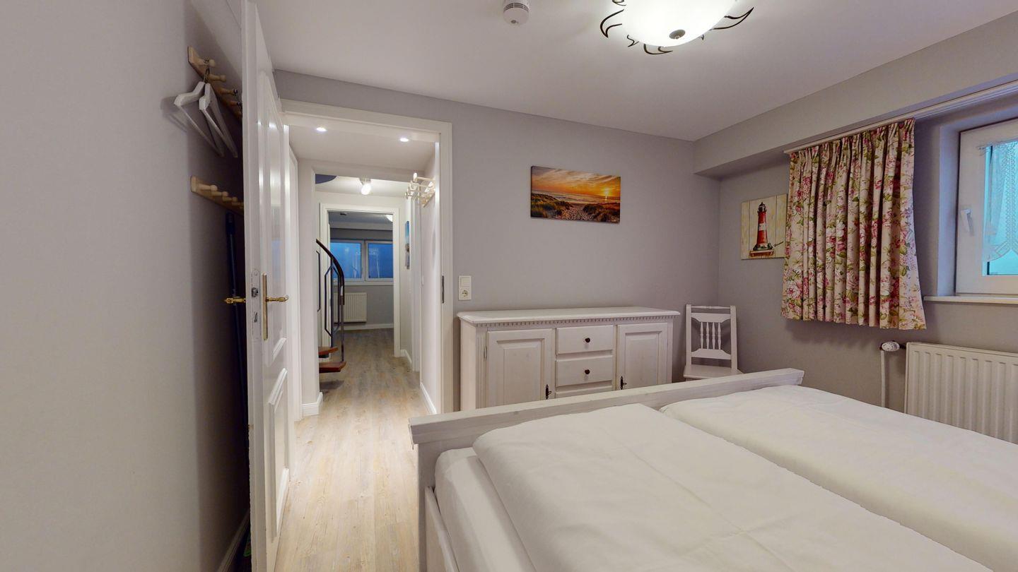 Eine Wendeltreppe führt ins Souterrain, hier befinden sich 2 weitere Schlafzimmer mit Fenstern die auf Wunsch Frischluft spenden. Ein Badezimmer mit Dusche, Badewanne und Fußbodenheizung ist ebenfalls vorhanden. Auf dieser Etage befindet sich auch eine weitere Eingangstür, die direkt in den Flur des Hauses führt, wo Sie eine breite Treppe finden, um Ihre Koffer ganz bequem bei An- und Abreise in diese Etage zu bringen.