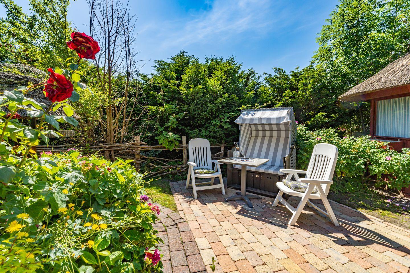 Gemütliche friesische Ferienwohnung in Keitum, nur 300 m vom Wattenmeer entfernt mit Terrasse im Gemeinschaftsgarten.