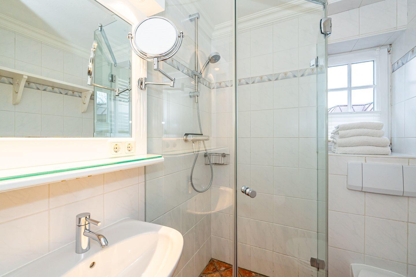 Diese gemütliche 2-Zimmer-Ferienwohnung liegt im Herzen von Keitum. Vom Flur der ebenerdigen Ferienwohnung "Kajüte" haben Sie Zutritt zu allen Räumen. Die Küche verfügt über einen Essplatz, Backofen, Geschirrspüler, Kühlschrank mit Gefrierfach und Nespressokapselmaschine. Im hellen Wohnbereich erwartet Sie ein Sofa und TV. Von hier aus haben Sie Zugang zu Ihre eigenen Terrasse im Gemeinschaftsgarten des 3 Parteien Hauses. Im Schlafzimmer erwartet Sie ein Doppelbett und ein Kleiderschrank. Das Badezimmer ist ausgestattet mit einer bodengleiche Dusche und WC und hat ein Fenster. Ein PKW Stellplatz steht Ihnen am Haus zur Verfügung.