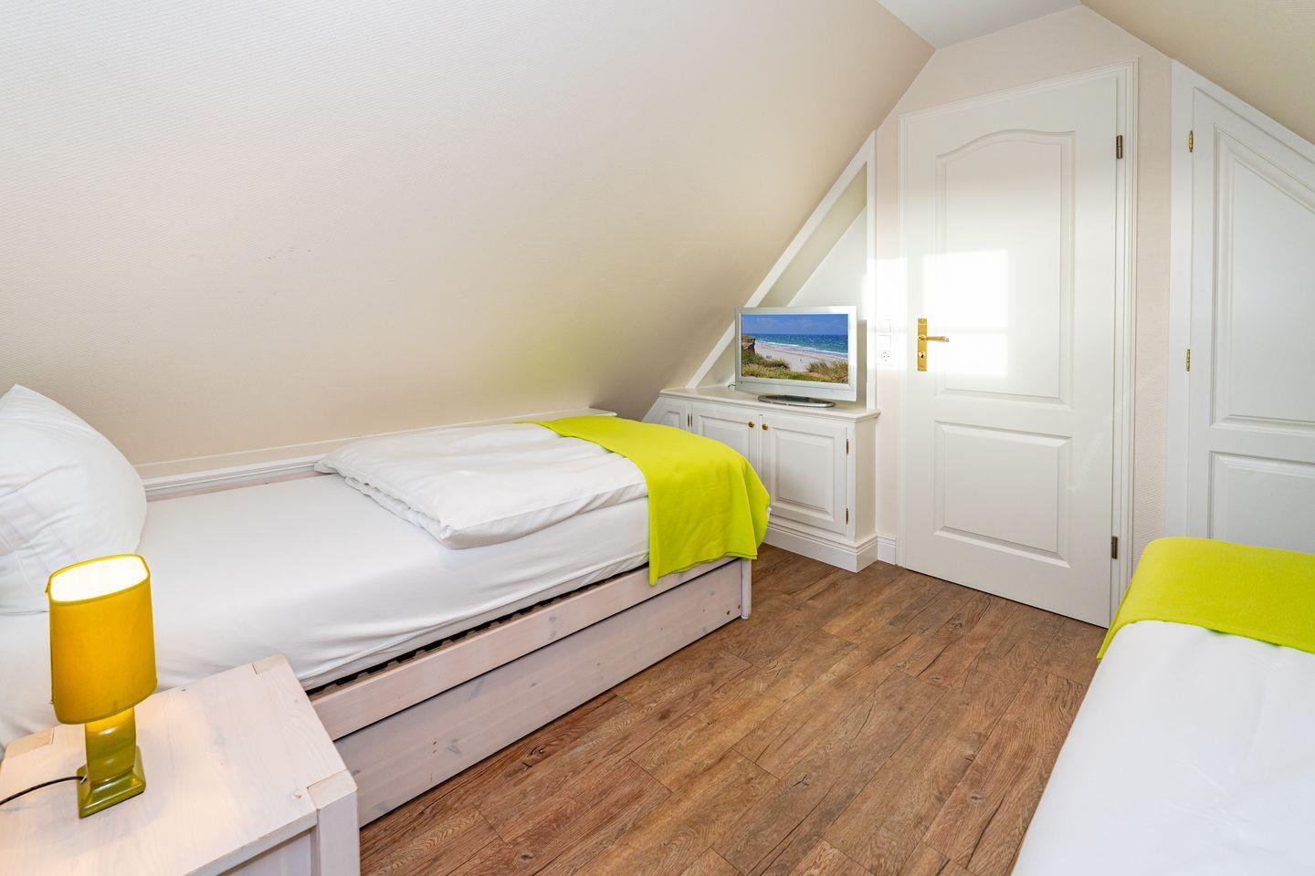 Im malerischen Dörfchen Munkmarsch, idyllisch unweit von Yachthafen und Wattenmeer, begrüßt Sie über drei Etagen das charmante Ferienhaus Senmare. Das Ferienhaus verfügt über ein großzügiges und gemütliches Wohnzimmer im Erdgeschoss mit Polstergarnitur und Flat Screen TV. Hier können Sie sich nach einem langen Tag am Strand entspannen. Die voll ausgestattete, offene Küche lädt zum Kochen und gemeinsamen Essen ein. Diese ist ausgestattet mit einem Backofen, Kühlschrank mit Gefrierfach, Geschirrspüler, Nespressomaschine, Kaffeefiltermaschine, Wasserkocher und Toaster. Ebenfalls im Erdgeschoss befindet sich ein Duschbad mit WC. Auf der Terrasse können Sie die frische Nordseeluft genießen und den Blick auf den Garten schweifen lassen. Im ersten Stock gibt es zwei Schlafzimmer, eines mit Doppelbett mit Kleiderschrank und eines mit zwei Einzelbetten und Kleiderschrank. In beiden Schlafzimmer befindet sich ein TV. Auf dieser Ebene steht Ihnen eine weiteres Badezimmer mit Dusche und WC und als besonderen Service auch Waschmaschine und Trockner zur Verfügung. Im Dachgeschoss erwartet Sie ein drittes Schlafzimmer ausgestattet mit zwei Einzelbetten, TV und Einbauschränken. Ein eigener Parkplatz befindet sich direkt am Ferienhaus. Das Ferienhaus liegt in der Nähe des Strandes, so dass Sie innerhalb weniger Minuten zu Fuß das Wattenmeer erreichen können.