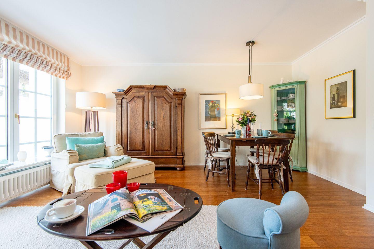 Gemütliche 3-Zimmer-Ferienwohnung unter Reet in Keitum, nur 100 m vom Wattenmeer entfernt, mit Terrasse und eigenem Parkplatz.