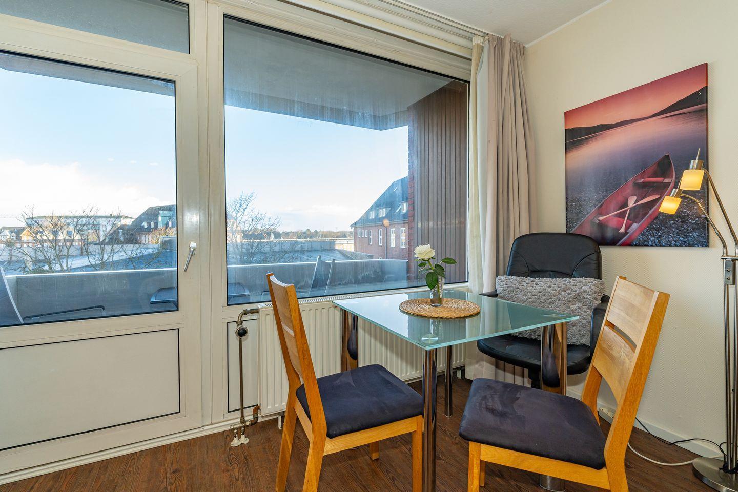 Moderne 1-Zimmer-Ferienwohnung Sylter Krabbe 19a mit Balkon, Sauna und Parkplatz in Westerland, nur 700 m vom Strand entfernt.