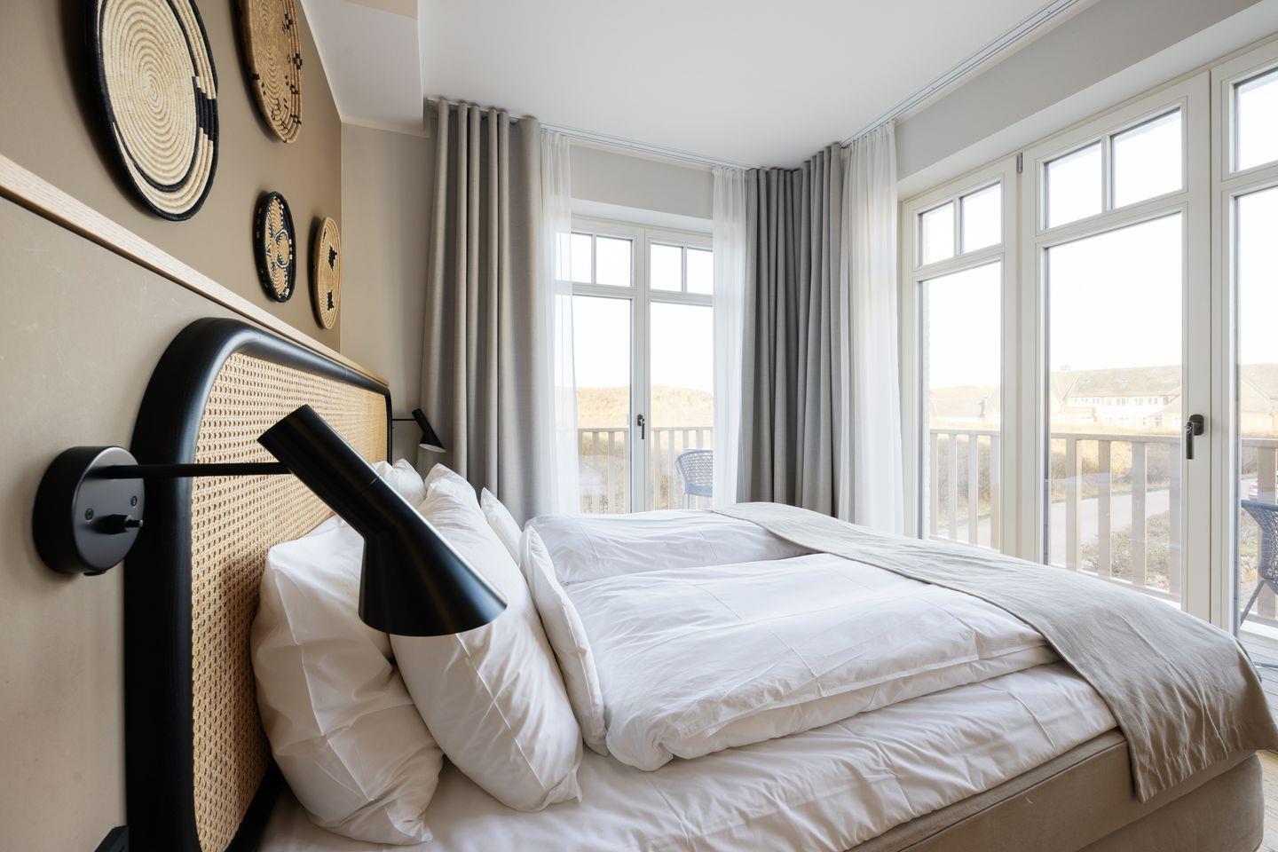 So können Sie nach einem ausgiebigen Strandspaziergang in Ihrer privaten KLAFS Sauna relaxen oder den herrlichen Blick auf die Sylter Dünenlandschaft von Ihrem Balkon mit Nord-West Ausrichtung genießen.