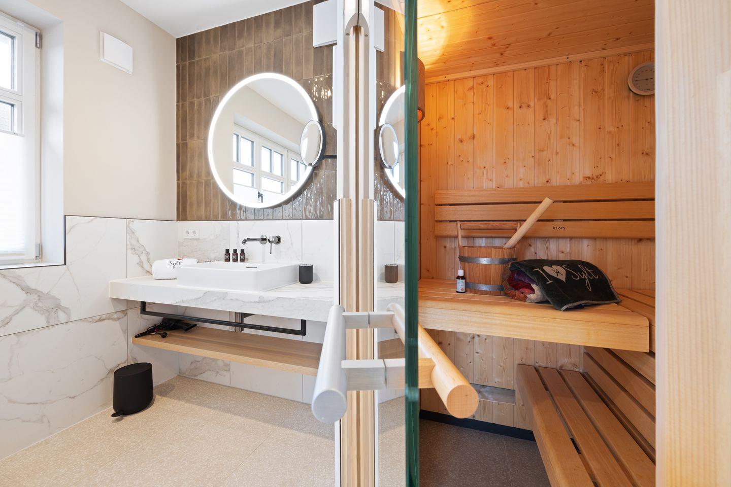 Exklusive 2-Zimmer-Ferienwohnung auf Sylt mit Dünenblick, moderner Ausstattung und privater Sauna für entspannte Tage.