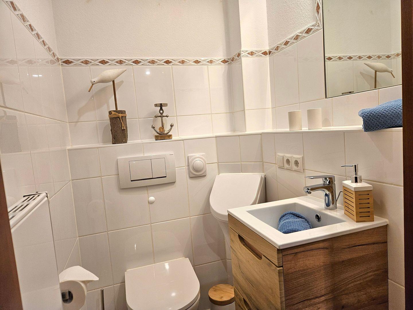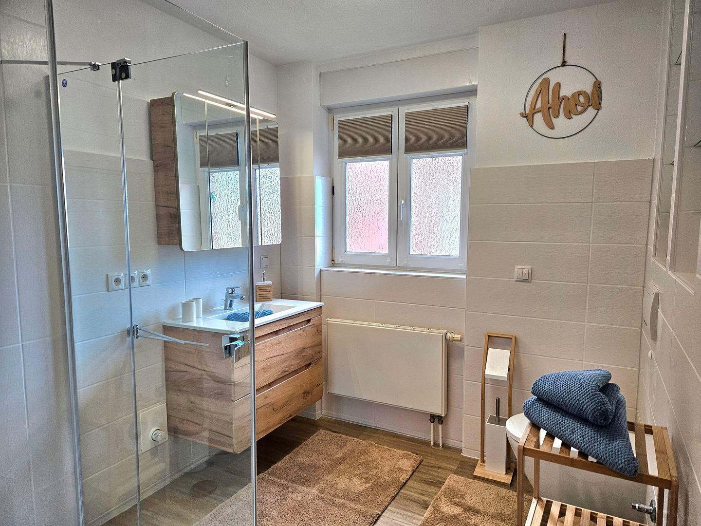 Das moderne Duschbad und das zusätzliche Gäste-WC sorgen für den nötigen Komfort während Ihres Aufenthalts. Zudem steht Ihnen der Wellnessbereich im Keller des Hauses zur Verfügung, wo Sie sich nach einem erlebnisreichen Tag wunderbar entspannen können.
