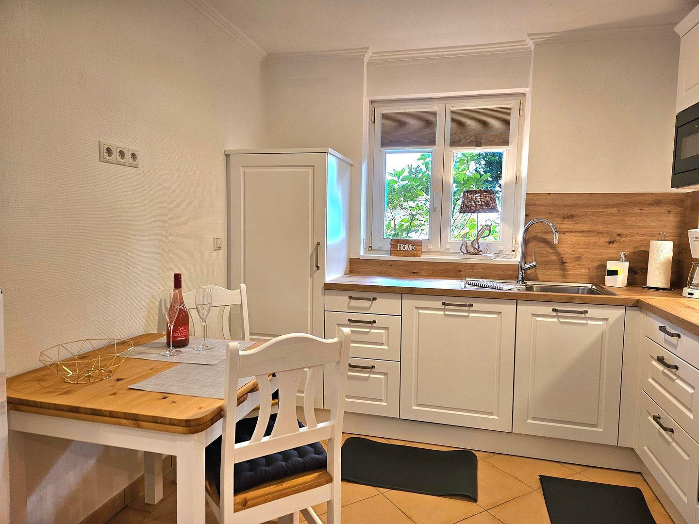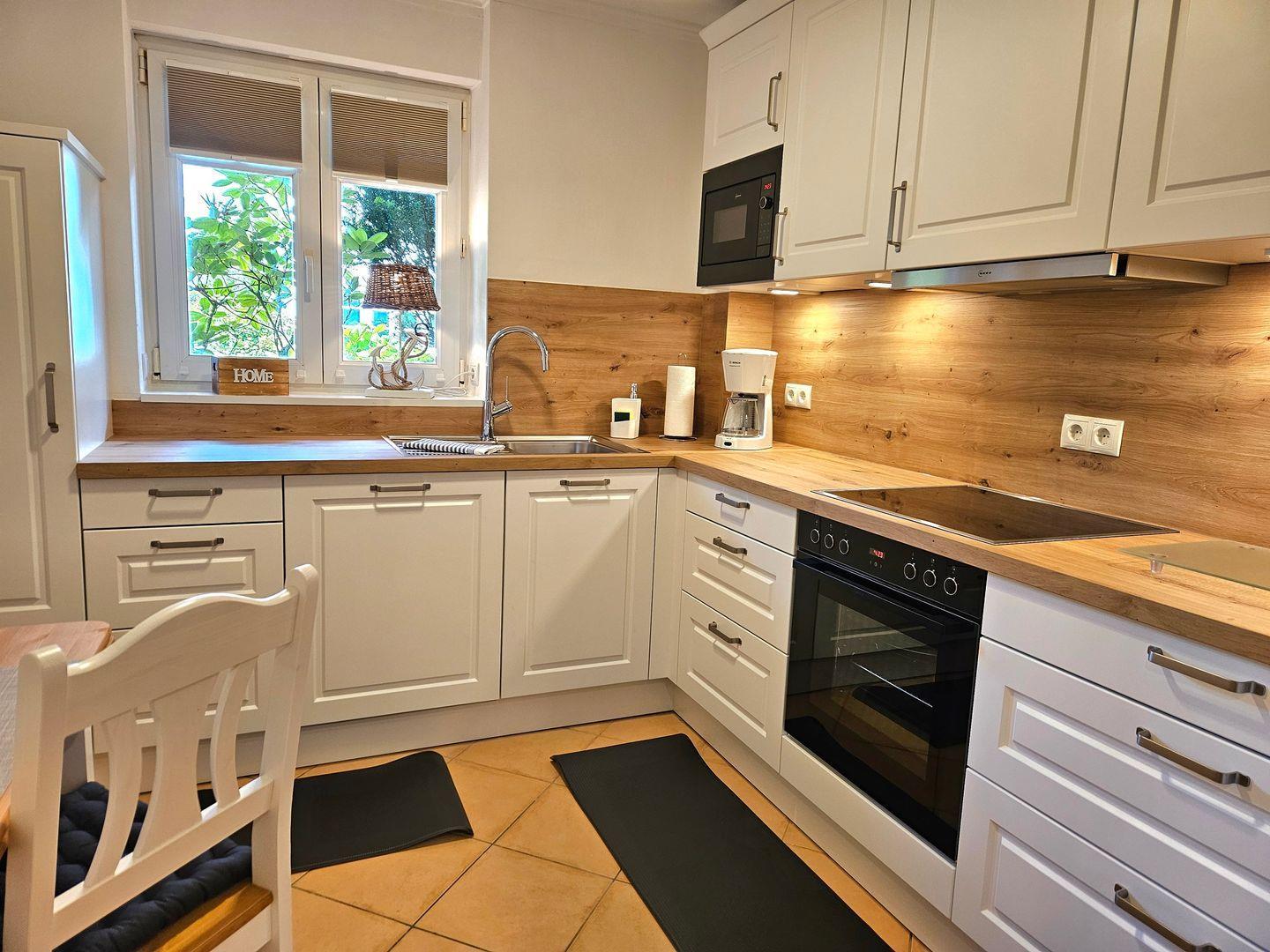Der große, helle Wohnraum lädt mit seinem gemütlichen Essbereich und direktem Zugang zur sonnigen Südterrasse sowie zum Wintergarten zum Verweilen und Entspannen ein. Die voll ausgestattete Küche lässt keine Wünsche offen und ermöglicht Ihnen, köstliche Mahlzeiten bequem in Ihrem Urlaubszuhause zuzubereiten.