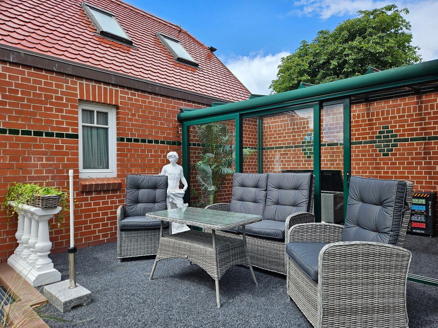Großzügige Erdgeschosswohnung auf Sylt mit Terrasse, Wintergarten und Wellnessbereich für entspannte Urlaubstage.