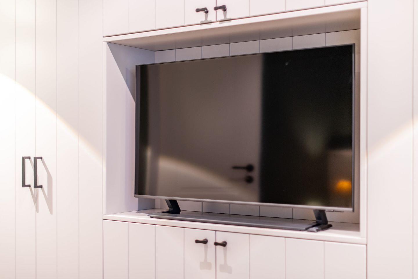 Die drei stilvoll gestalteten Schlafzimmer bieten erholsamen Schlaf und ein gemütliches Ambiente. Im ersten Schlafzimmer erwartet Sie ein großzügiges Doppelbett (180x200 cm), ein geräumiger Kleiderschrank und ein TV. Das Hauptschlafzimmer ist ebenfalls mit einem komfortablen Doppelbett (180x200 cm) ausgestattet und bietet zusätzlich einen Schreibtisch, ideal als kleine Arbeitsecke. Das dritte Schlafzimmer verfügt über zwei Einzelbetten (je 100x200 cm), die ausgezogen zu einem Doppelbett werden können, sowie einen Einbauschrank. Alle Zimmer sind harmonisch gestaltet und versprechen wohltuende Erholung.