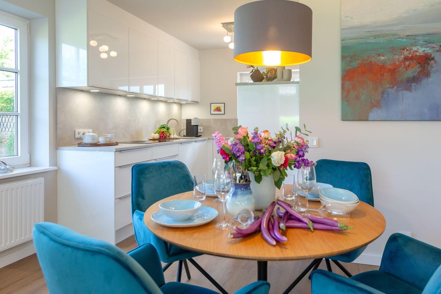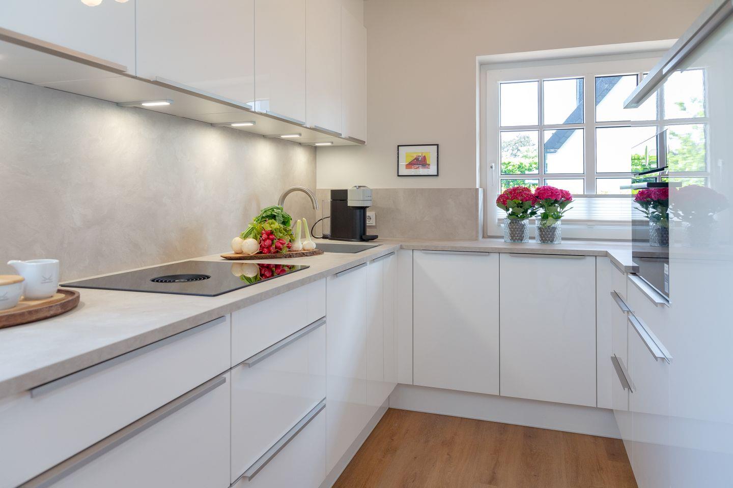 Genießen Sie die modernen Annehmlichkeiten, die diese Wohnung zu bieten hat. Eine voll ausgestattete Küche erwartet Sie mit exklusiven Extras wie einem Induktionskochfeld und einem kombinierten Backofen mit Mikrowelle. Ein besonderes Highlight ist der Bora-Dunstabzug, der nicht nur funktional ist, sondern auch stilvoll integriert wurde. Zusätzlich finden Sie hier eine Nespresso-Maschine für Ihren morgendlichen Kaffeegenuss.