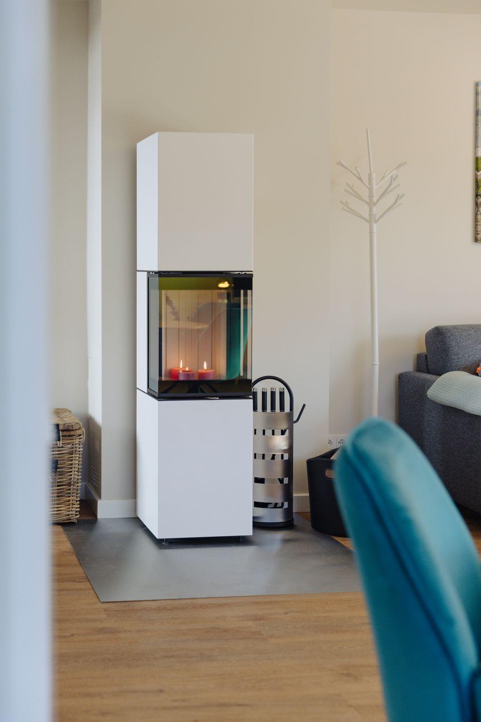 Für ein gemütliches und entspanntes Wohlfühl-Ambiente sorgt ein neu eingebauter Kamin, der sich im Wohnbereich der Wohnung befindet.