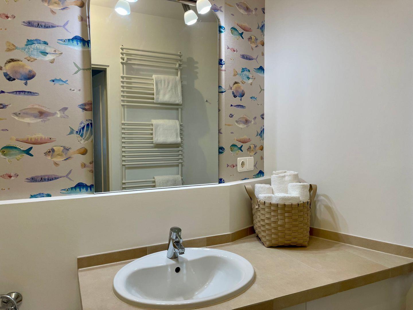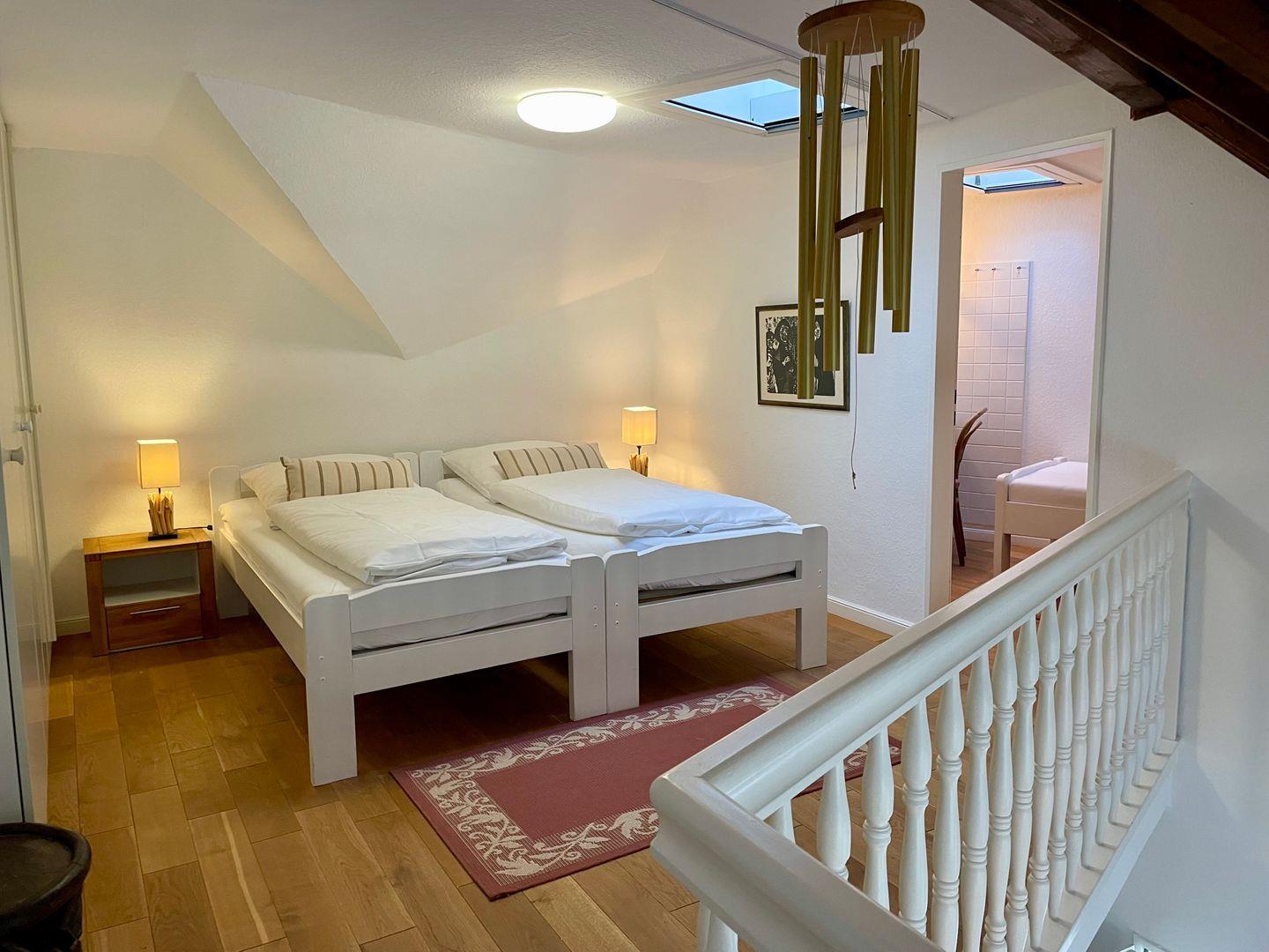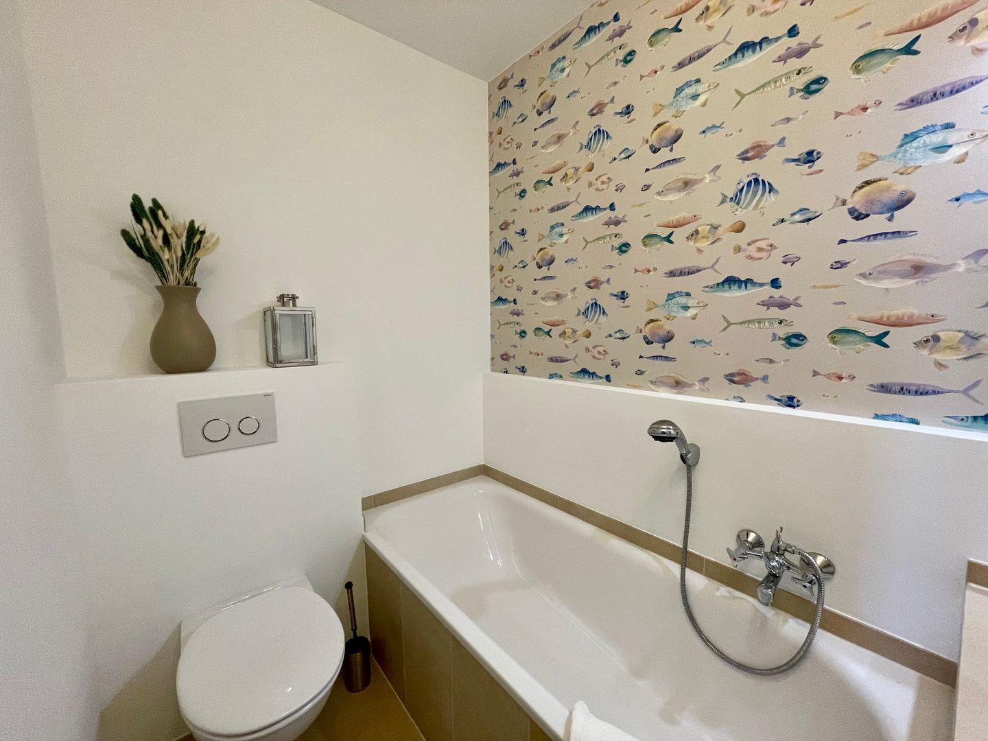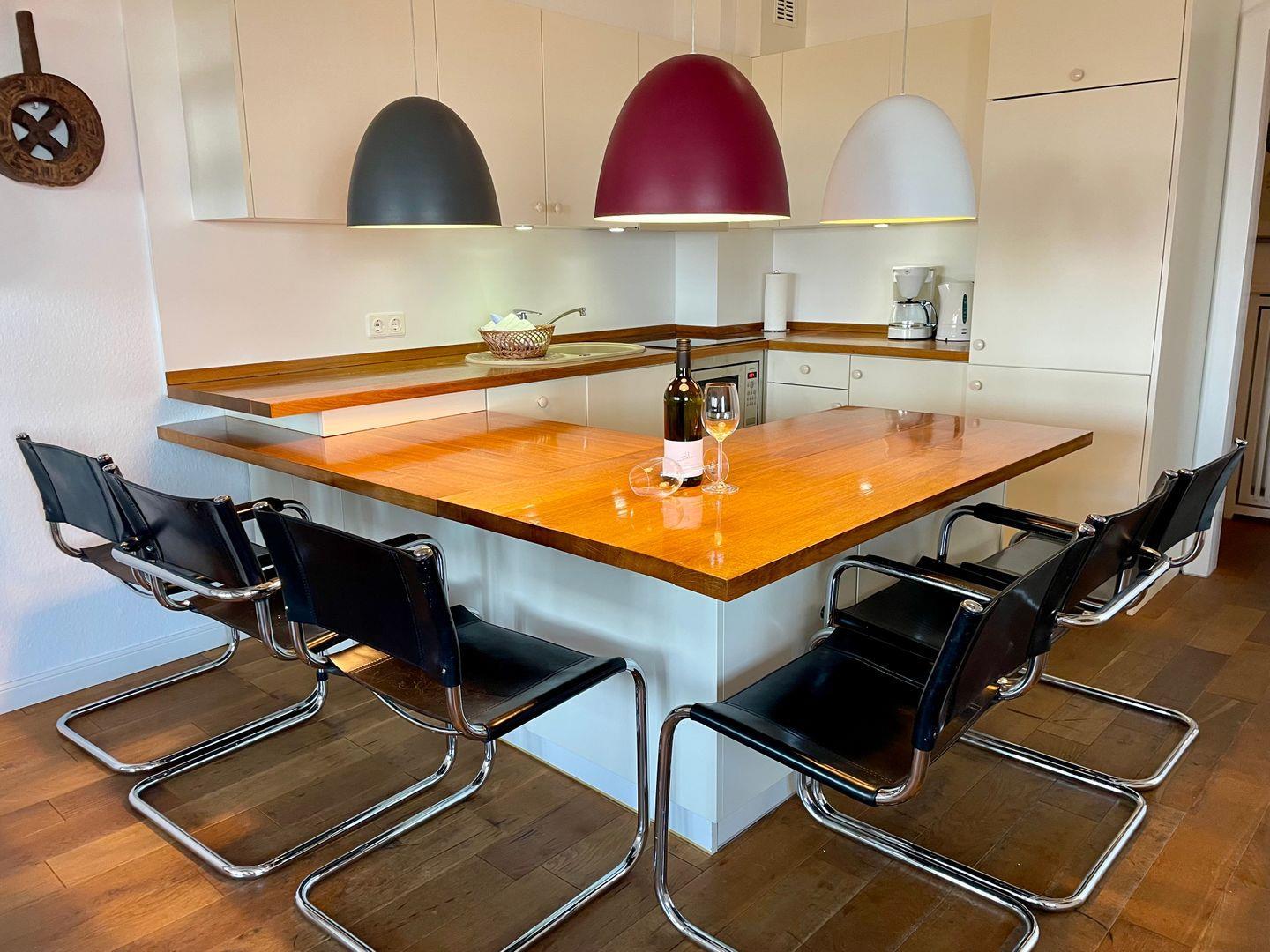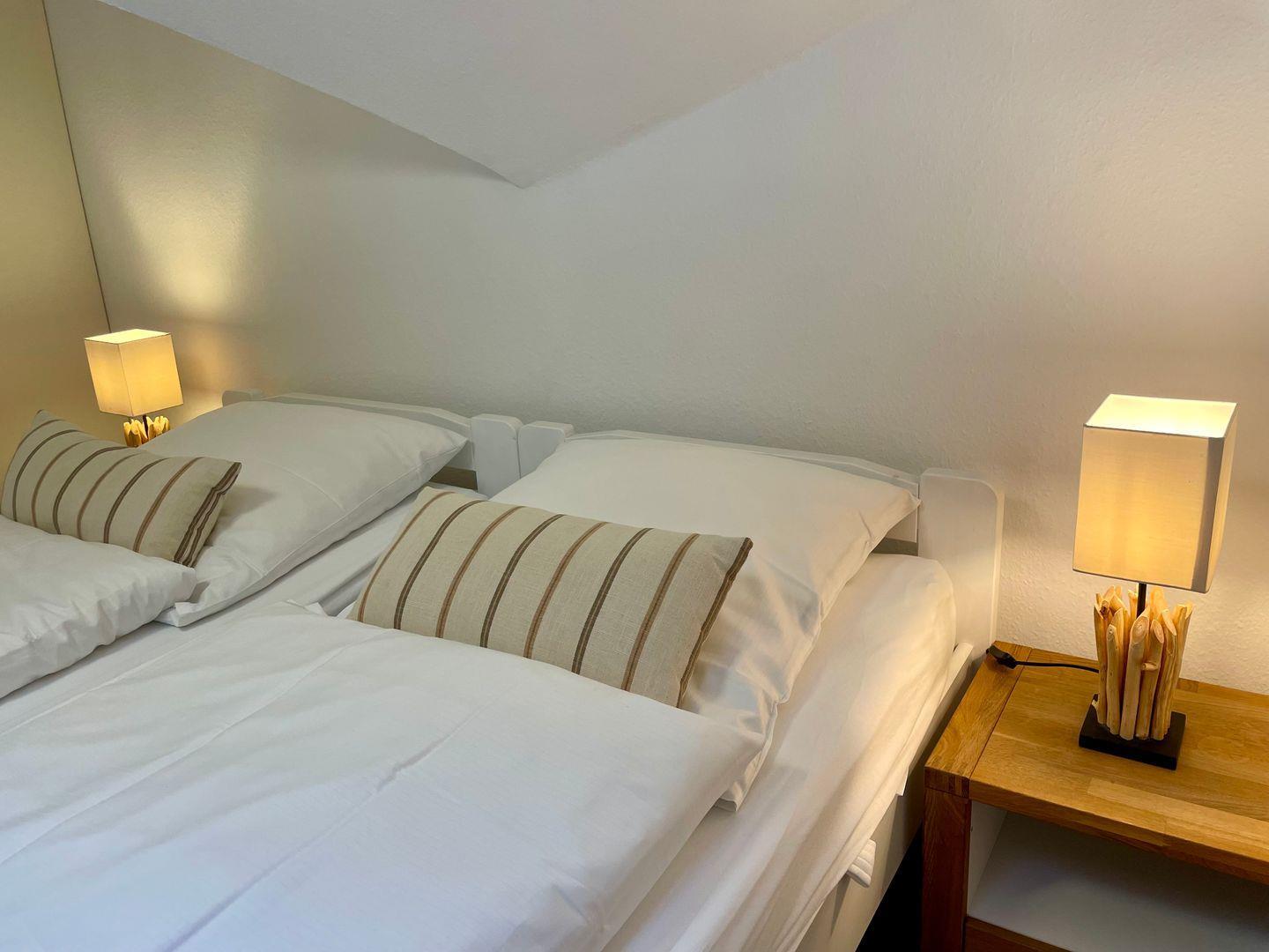 Die helle Wohnung bietet mit direktem Blick aufs Wattenmeer einen Ort der Erholung und des Ankommens. Der offene und mit hohen Decken ausgestattete Wohnbereich ist durch einen Esstresen von der Küche abgegrenzt. Zudem befinden sich auf dieser Ebene der Wohnung ein gemütliches Doppelbettzimmer und ein modernes Bad mit Badewanne und Dusche. Über eine Treppe gelangen Sie auf die Galerie. Hier finden Sie ein weiteres Doppelbett sowie ein Einzelbettzimmer.