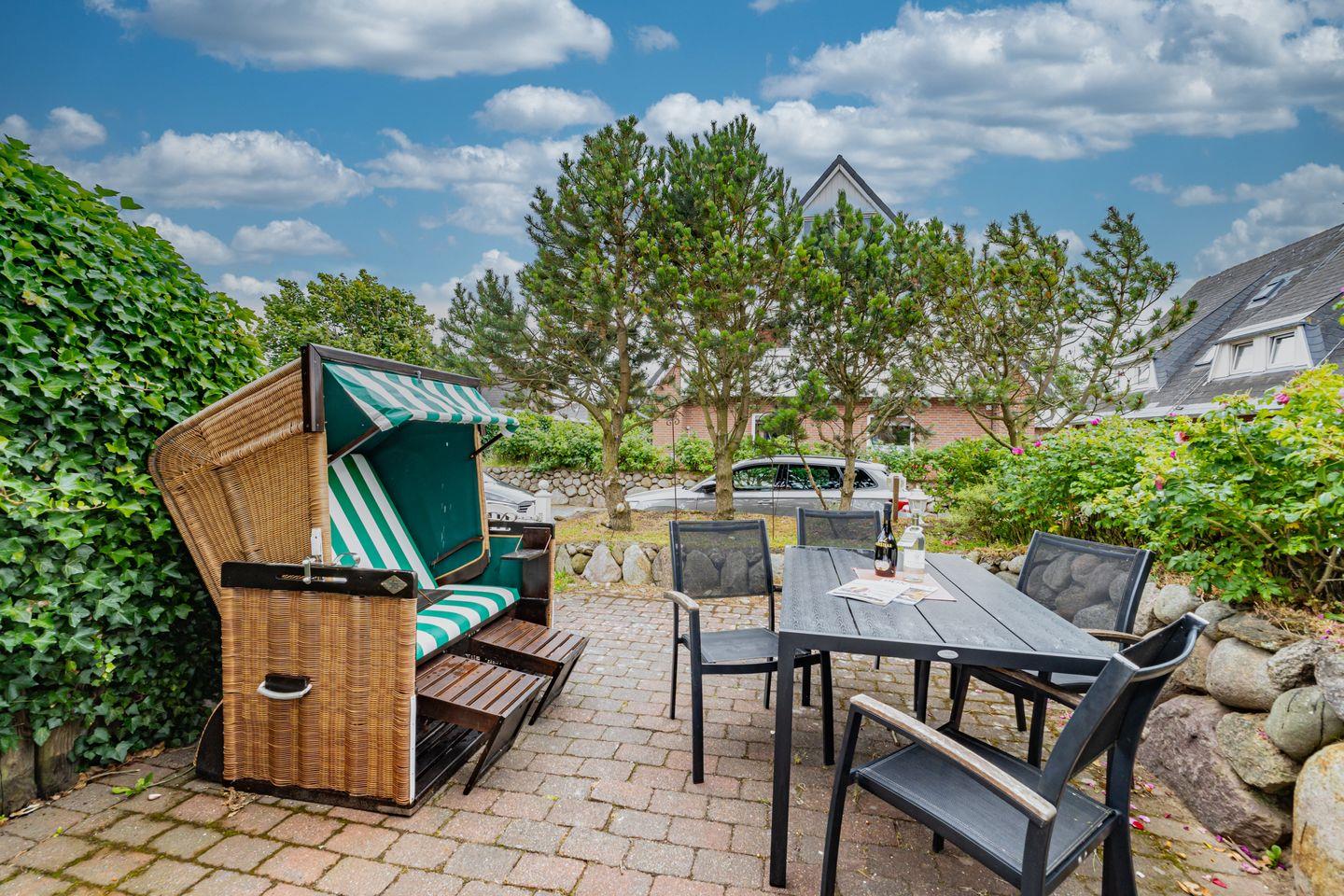 Gemütliche Ferienhaushälfte auf Sylt mit Terrasse, nur 350 m vom Strand entfernt, ideal für erholsame Tage an der Nordsee.