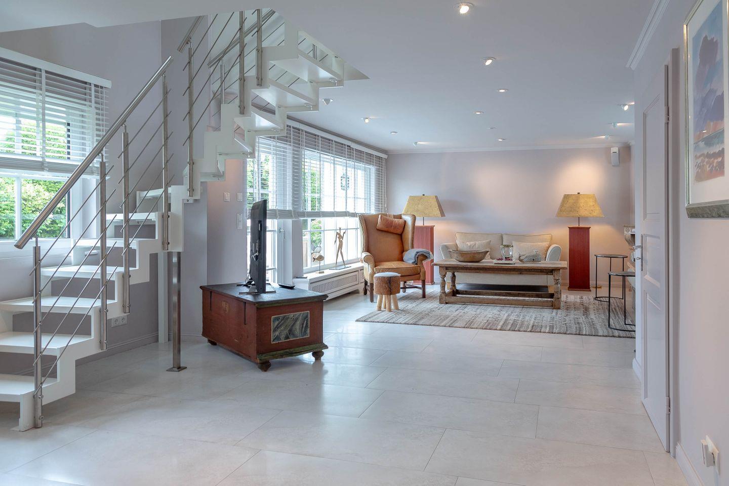 Die Einrichtung überzeugt mit ihren hochwertigen Tischlereinbauten und den stilvollen Details. Ob in weichen Polstern , am großen Esstisch oder auf der Terrasse: Es bieten sich viele Möglichkeiten gemeinsam zu entspannen und zu genießen. Zu jeder Jahreszeit.