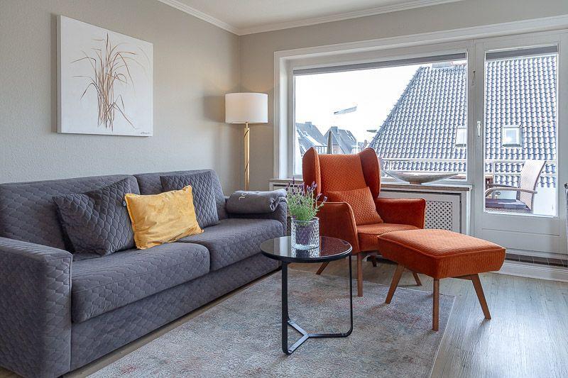 Moderne 2-Zimmer-Ferienwohnung "Strand-Brise" in Westerland, nur 200 m vom Strand entfernt, mit Sauna und Balkon für erholsame Urlaubstage.