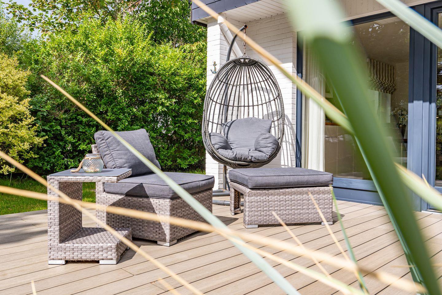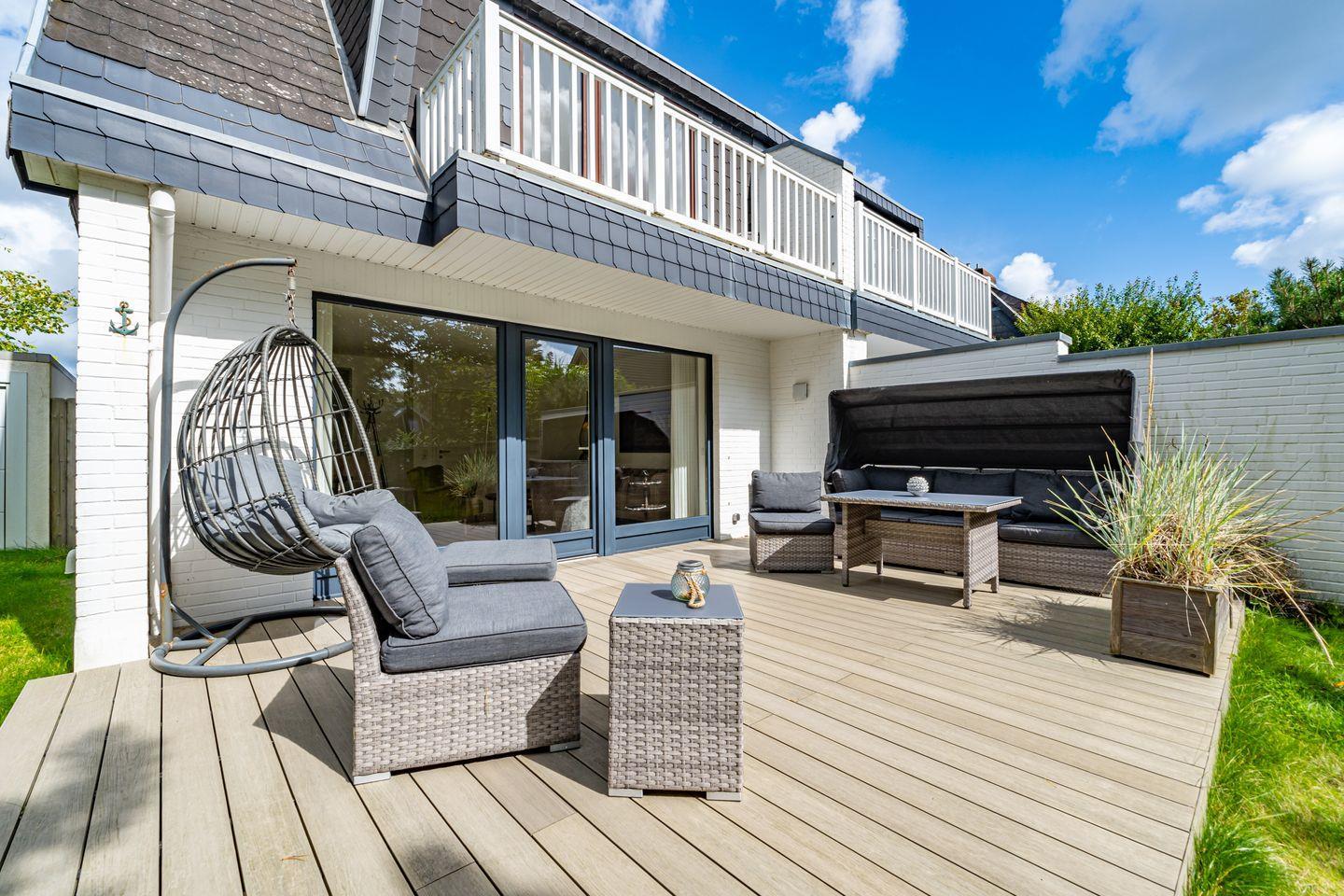 Großzügige Ferienhaushälfte auf Sylt mit Terrasse, Garten und moderner Ausstattung für erholsame Tage.