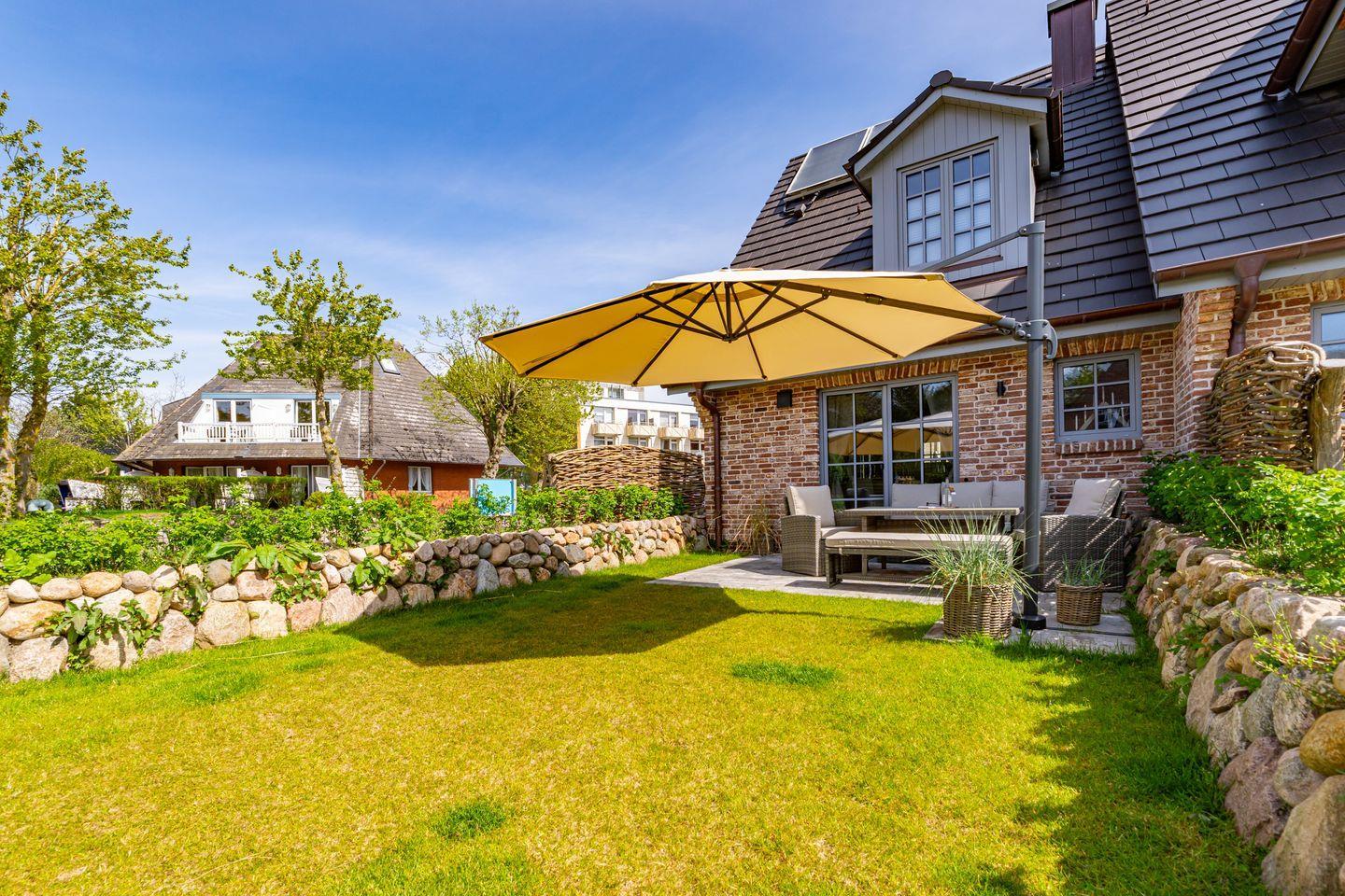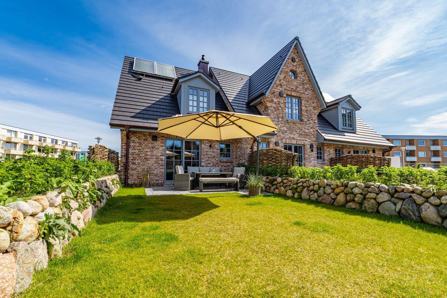 Moderne Ferienhaushälfte in Westerland mit Sauna, Garten und Kamin für entspannte Tage auf Sylt.