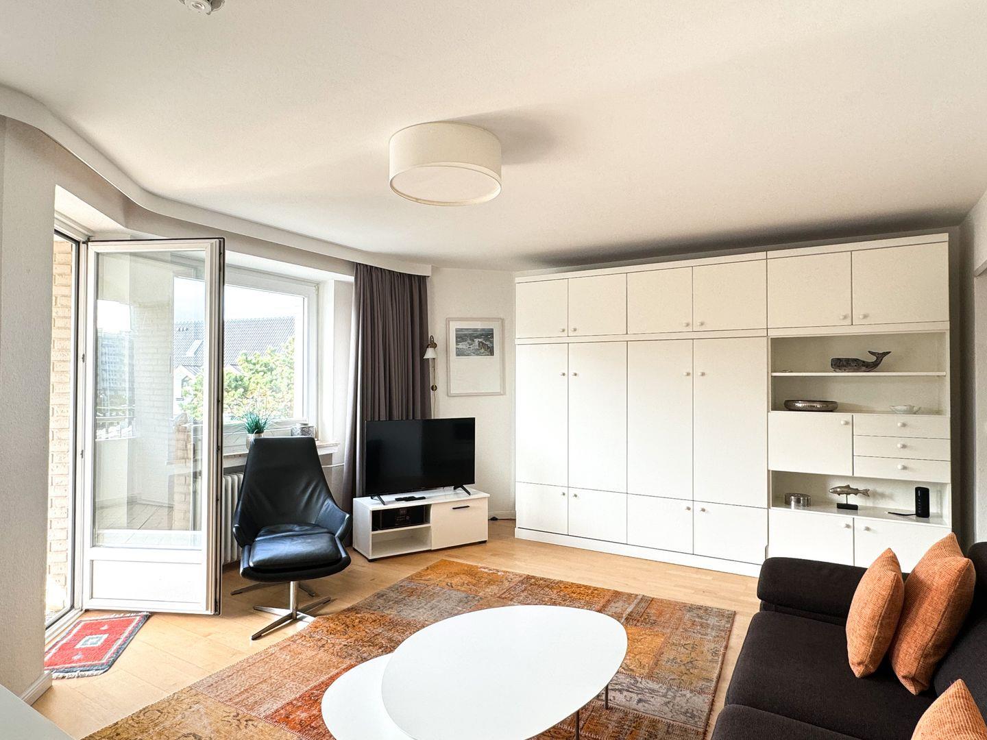 Gemütliche 2-Zimmer-Wohnung in zentraler Lage auf Sylt mit Balkon und zwei Bädern, nur 350 m vom Strand entfernt.