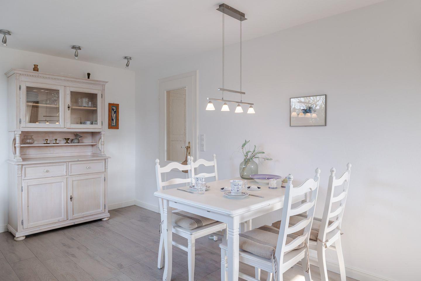 Die Ferienwohnung ist modern und komfortabel eingerichtet und verfügt über zwei gemütliche Schlafzimmer, die zum Entspannen einladen. Das helle und freundliche Wohn- und Esszimmer ist der ideale Ort für gesellige Abende oder um nach einem aufregenden Tag am Strand zur Ruhe zu kommen. Der Essbereich ist perfekt für gemeinsame Mahlzeiten und die offene, geschlossene Küche bietet alles, was Sie benötigen, um Ihre kulinarischen Wünsche zu erfüllen. Ausgestattet mit einem Ceranherd, Kühlschrank, Spülmaschine, Kaffeemaschine und vielen weiteren Küchenutensilien, wird das Kochen zum Vergnügen.