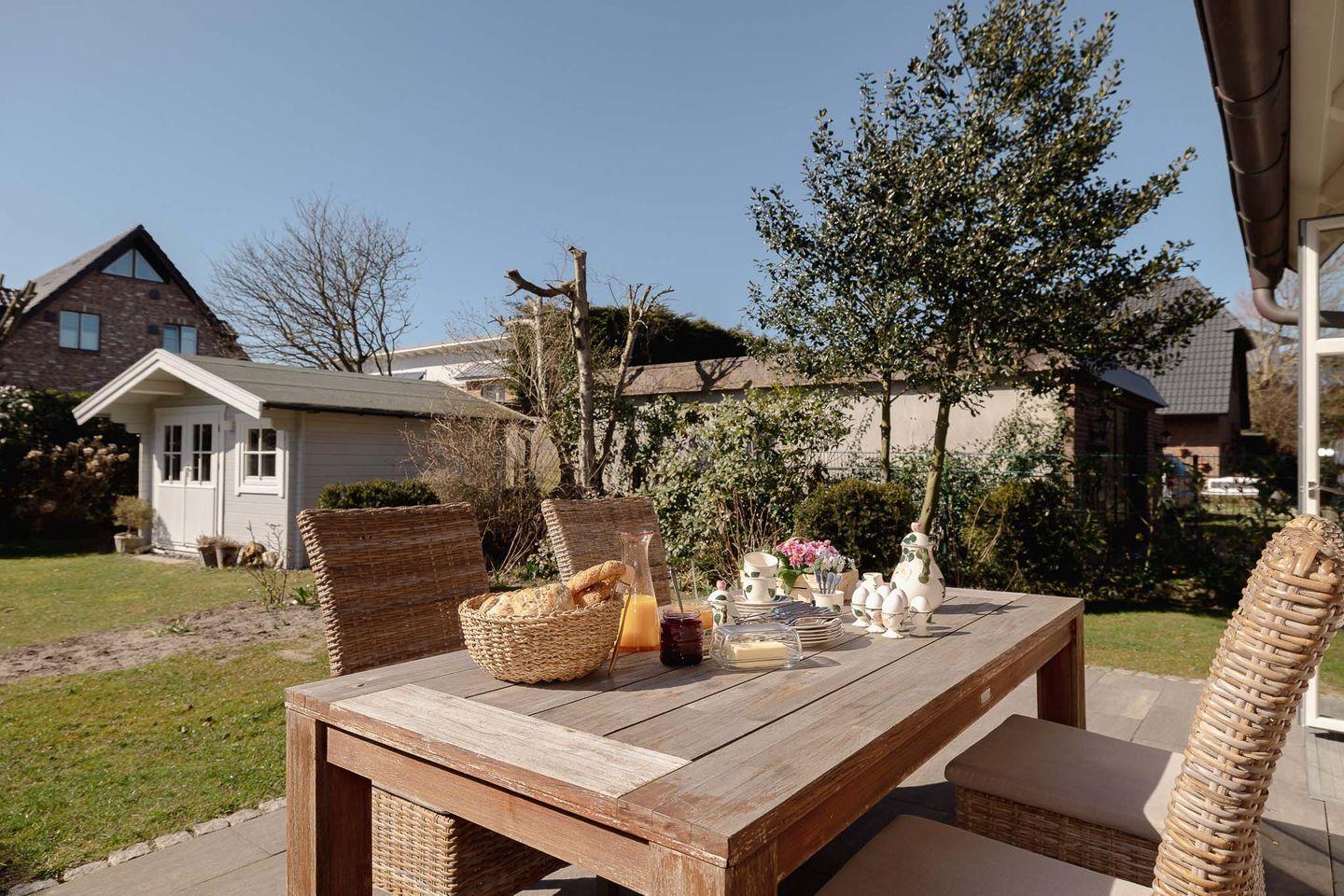 Das Hygge Hus überzeugt nicht nur im Inneren, sondern auch mit einem traumhaften Außenbereich. Der komplett umzäunte Garten mit einer großzügigen Terrasse und einem Strandkorb ist der perfekte Ort, um die Sonne zu genießen, gemütlich zu frühstücken oder einfach die frische Sylter Luft zu atmen. Ihre Hunde sind hier ebenfalls herzlich willkommen und können sich unbeschwert im Garten bewegen.