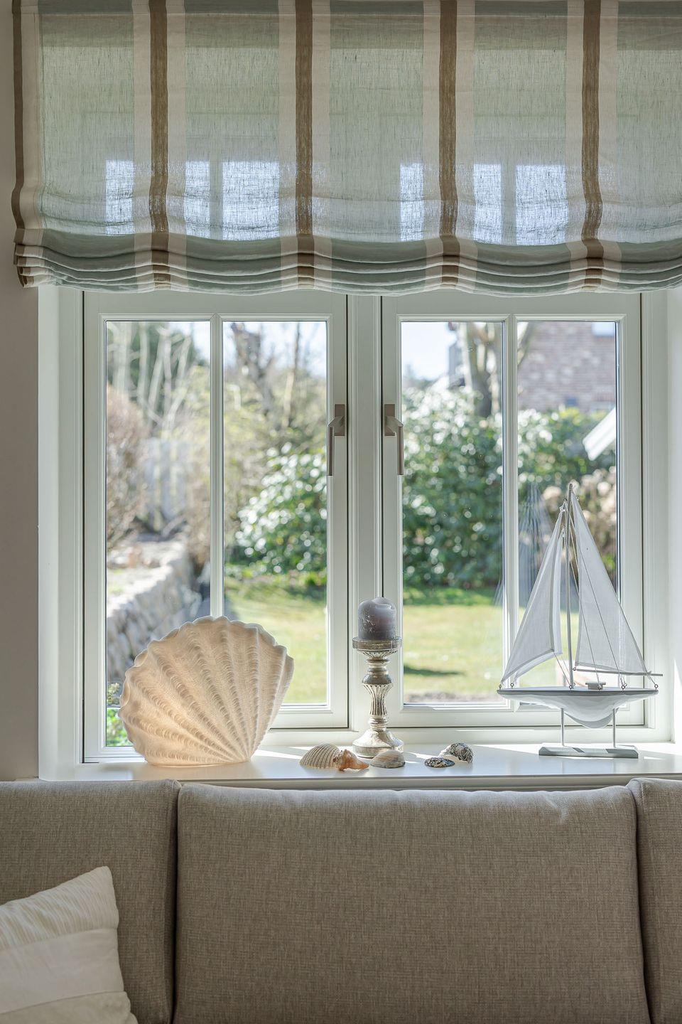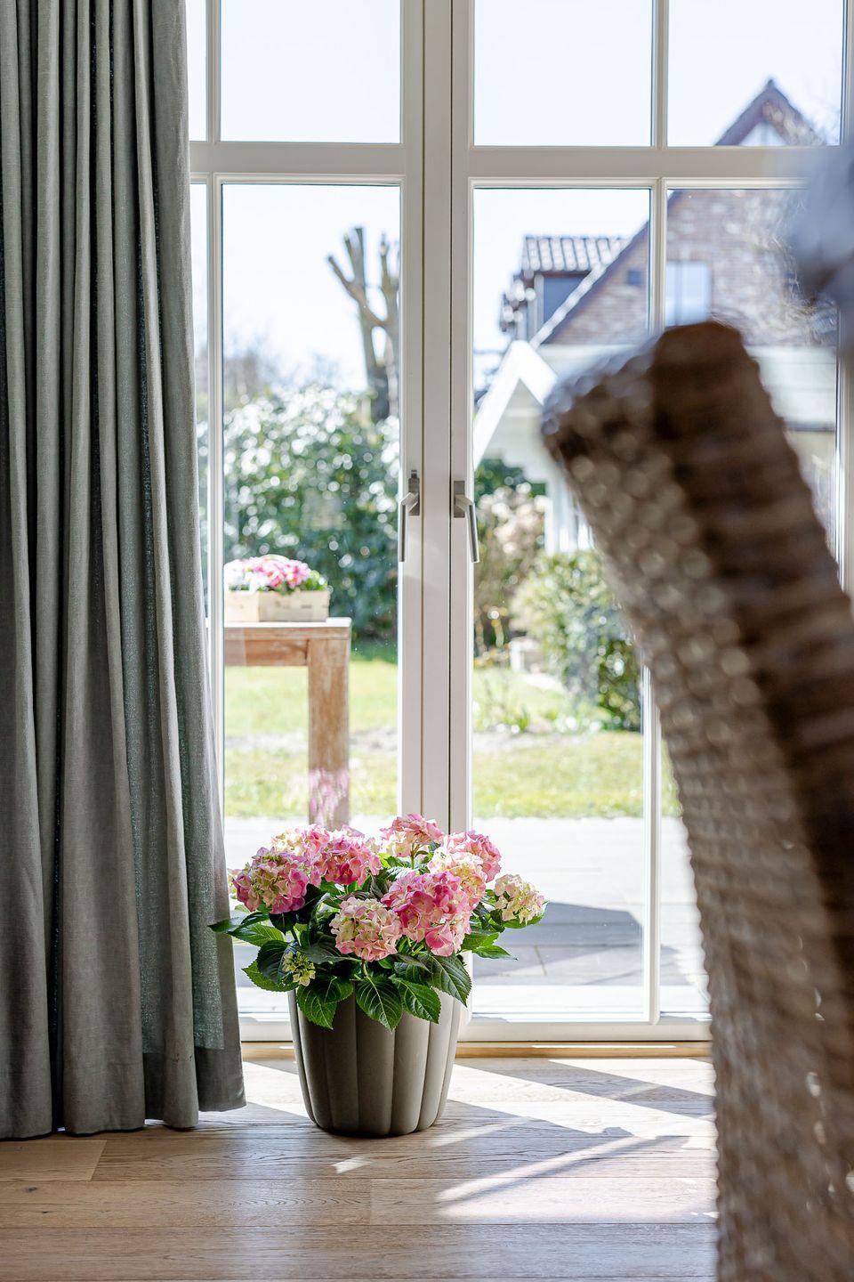 Das gesamte Haus verfügt über hochwertige dänische Fenster, die sich nicht auf Kipp stellen lassen. Beim Öffnen der Fenster und anschließendem Drehen des Griffs nach oben arretiert das Fenster sicher in geöffneter Position.