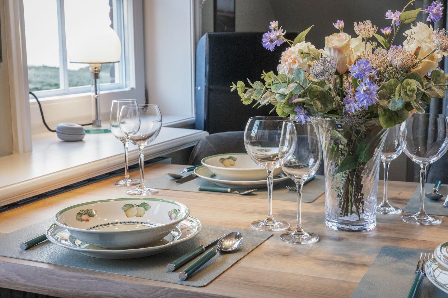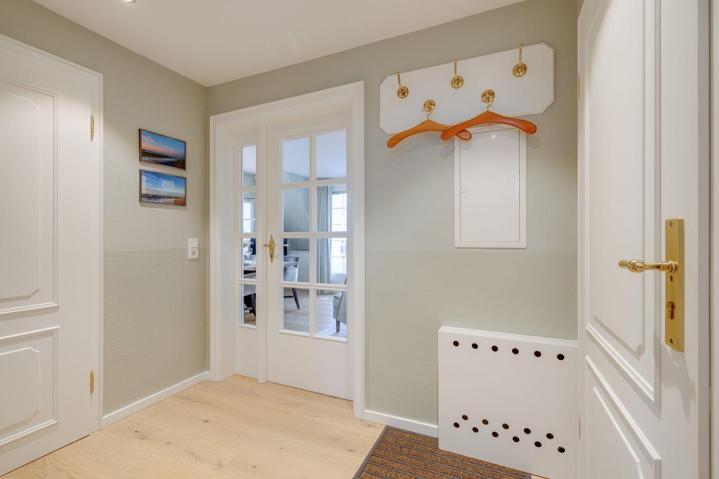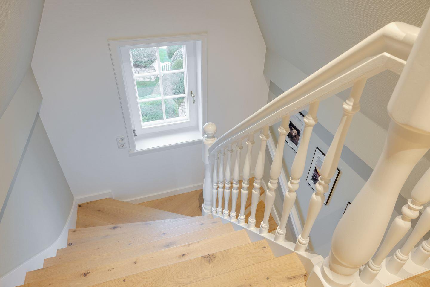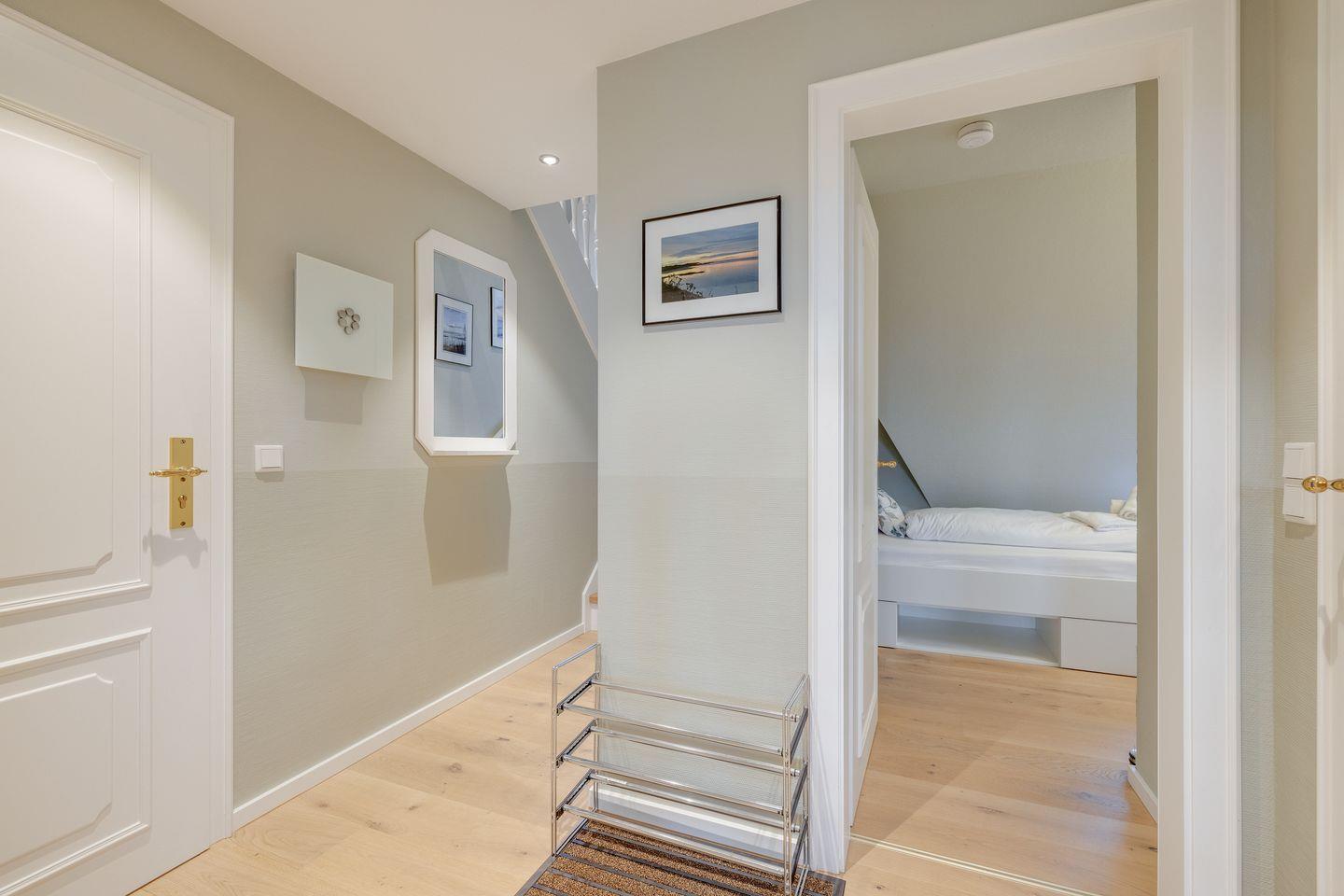 Stilvolle Ferienwohnung "Waterkant" in Munkmarsch mit seitlichem Blick aufs Wattenmeer. Über den Eingang gelangen Sie ins Obergeschoss: lichtdurchfluteter Wohn-/Essbereich mit geschmackvollen Möbeln, offener Küche und Südbalkon. Ebenfalls auf dieser Etage: (Kinder-)Schlafzimmer mit zwei Einzelbetten (1,20 x 2,00 m) und Bad mit Dusche/WC. Ein weiteres Schlafzimmer mit Boxspringbett (1,80 x 2,00 m) befindet sich im ersten Obergeschoss. Waschmaschine & Trockner sind im Gemeinschaftsraum verfügbar.