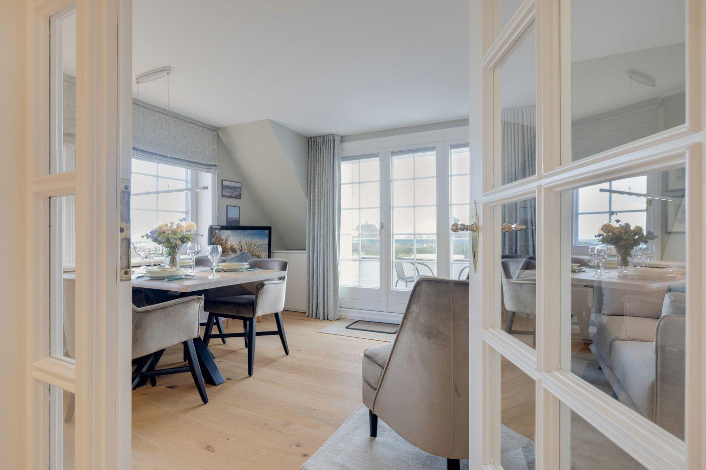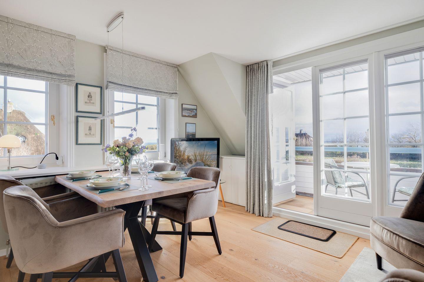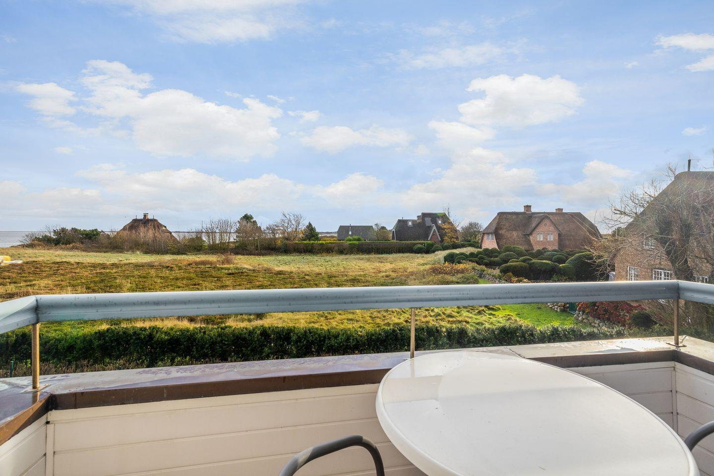 Stilvolle Ferienwohnung Waterkant in Munkmarsch mit seitlichem Wattenmeerblick und Südbalkon für erholsame Stunden.