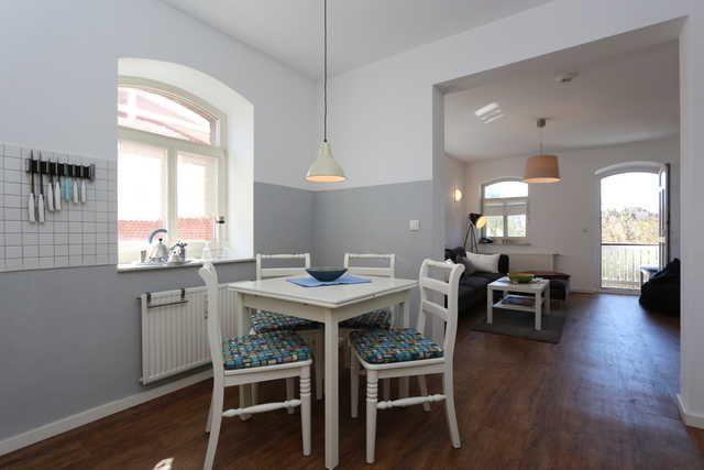 Der offene Wohnbereich ist mit einem gemütlichen Wohnzimmer ausgestattet, das zum Entspannen einlädt. Hier können Sie mit Ihren Liebsten zusammenkommen, Filme schauen oder einfach die freie Zeit genießen. Der große Esstisch bietet genügend Platz für gesellige Abendessen, während die integrierte Küche mit allen notwendigen Annehmlichkeiten ausgestattet ist, um köstliche Mahlzeiten zuzubereiten. Ob Frühstück, Mittagessen oder ein romantisches Dinner – hier werden Sie zum Hobbykoch!