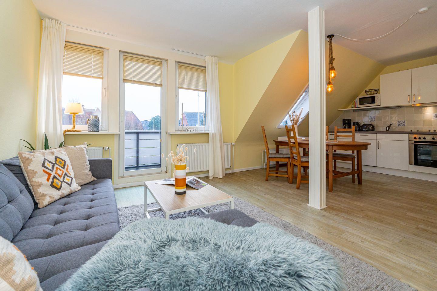 Charmante 3-Zimmer-Ferienwohnung mit Terrasse in Westerland auf Sylt, ideal für entspannte Tage und gesellige Abende.