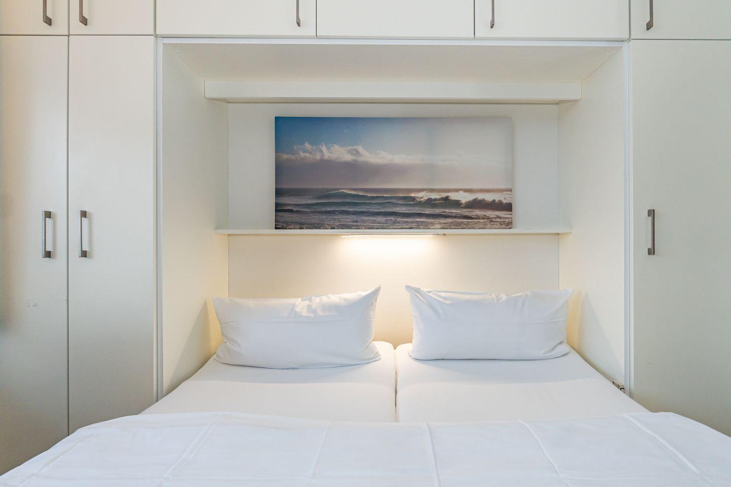 Das Friesennest überzeugt durch eine durchdachte Raumgestaltung. Der offene Küchenbereich zum Wohn- und Schlafbereich bietet Ihnen die Möglichkeit, gemeinsam zu kochen. Die Küche ist ausgestattet mit einer Mikrowelle, Kühlschrank, Kaffeefiltermaschine und Toaster. Genießen Sie Ihre Mahlzeiten am Esstisch der sich am Fenster befindet oder auf dem Balkon. Als Schlafmöglichkeit steht Ihnen ein ausklappbares Schrankbett zur Verfügung. Das Badezimmer ist modern gestaltet und mit einer Dusche, WC und Waschbecken ausgestattet.