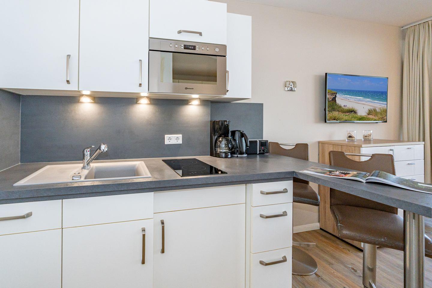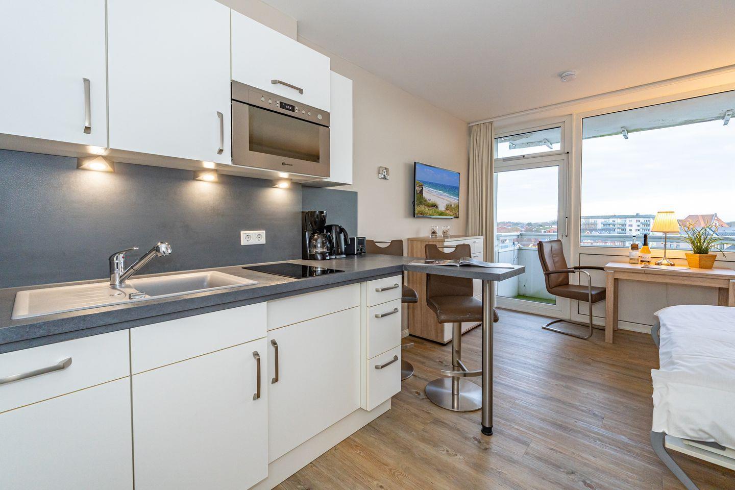 Zentrale 1-Zimmer-Ferienwohnung auf Sylt mit Balkon, nah am Strand und Restaurants, ideal für entspannte Tage zu zweit.
