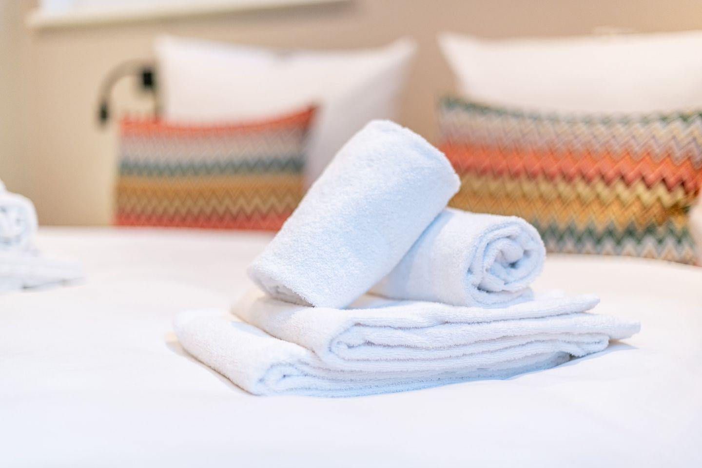 Zwei gemütliche Schlafzimmer sorgt für erholsame Nächte. Geschmackvoll eingerichtet bieten sie Ihnen einen idealen Rückzugsort zum Entspannen. Das Wohnzimmer mit Boxspring-Schlafsofa bietet zusätzlichen Schlafplatz für zwei Kinder.