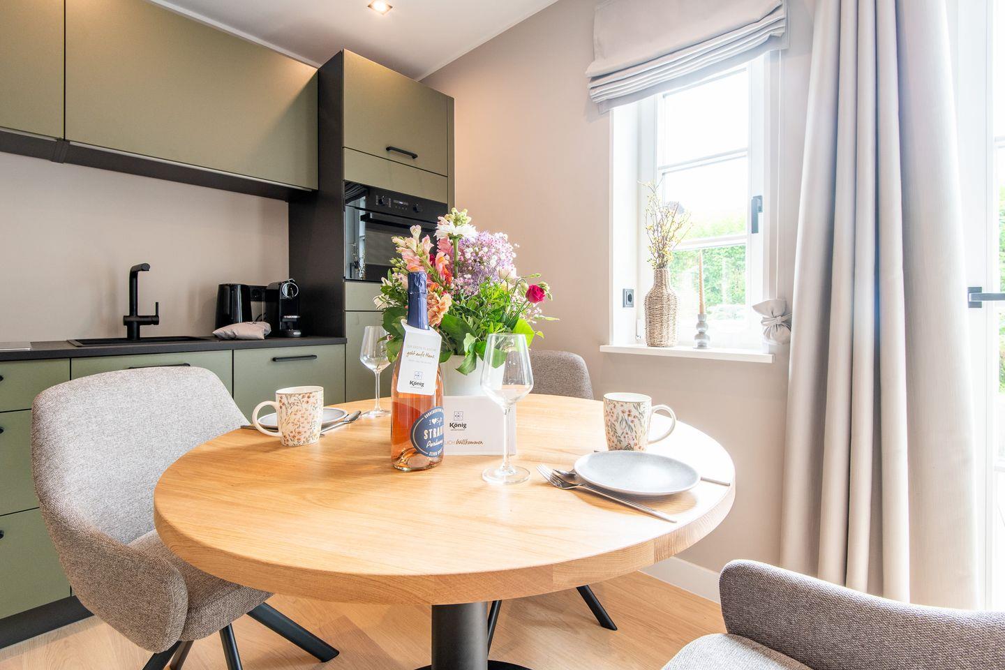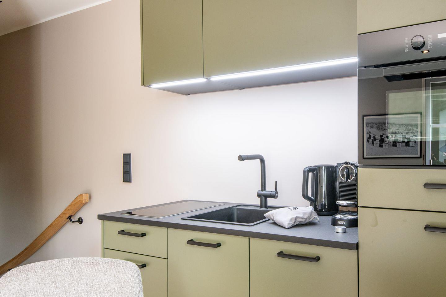 Die offene Küche ist modern ausgestattet und lässt keine Wünsche offen. Von hochwertigen Geräten bis hin zu einer umfangreichen Ausstattung – hier wird Kochen zum Vergnügen. Genießen Sie Ihr Frühstück ganz privat oder bereiten Sie ein Abendessen ganz nach Ihren Wünschen vor.