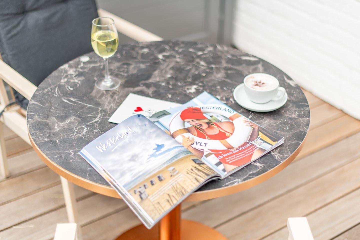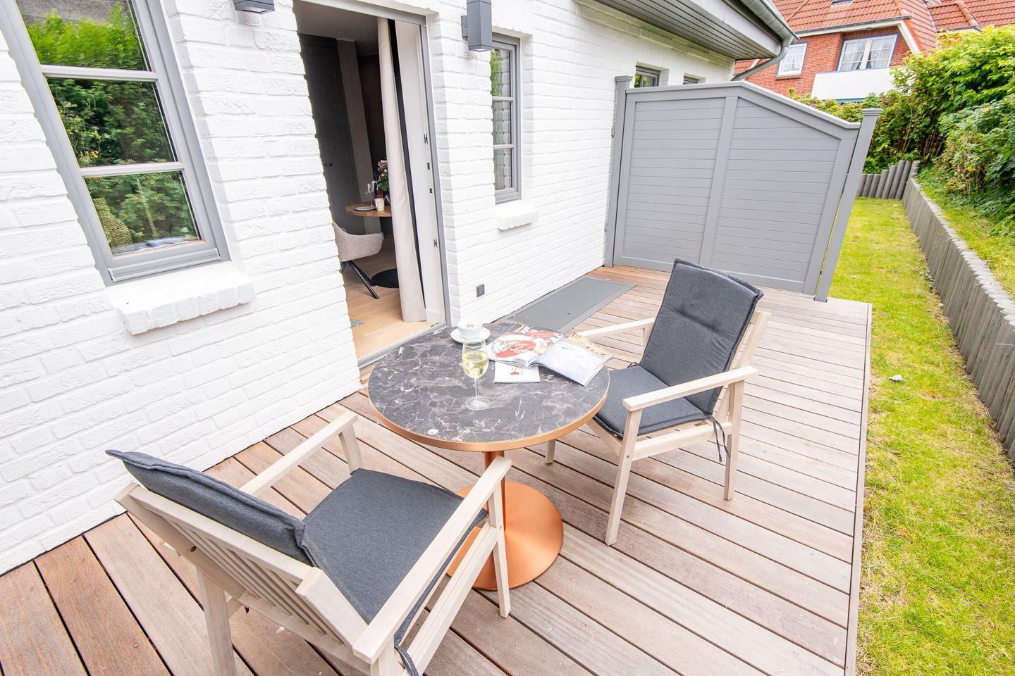 Moderne 2-Zimmer-Ferienwohnung in Westerland mit großer Südterrasse, Sauna und Fitnessbereich für erholsame Tage auf Sylt.