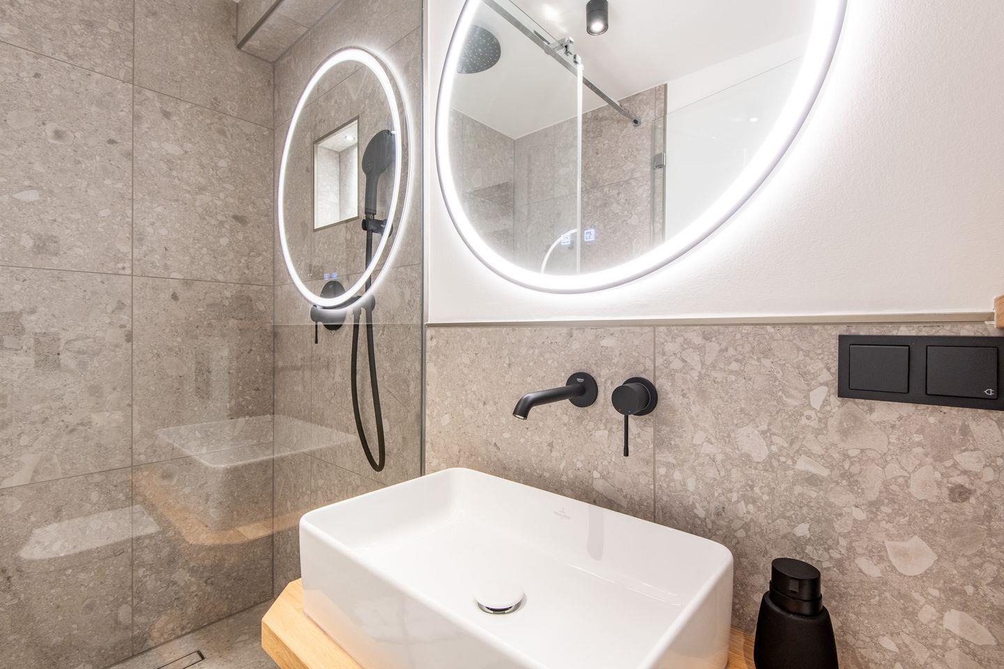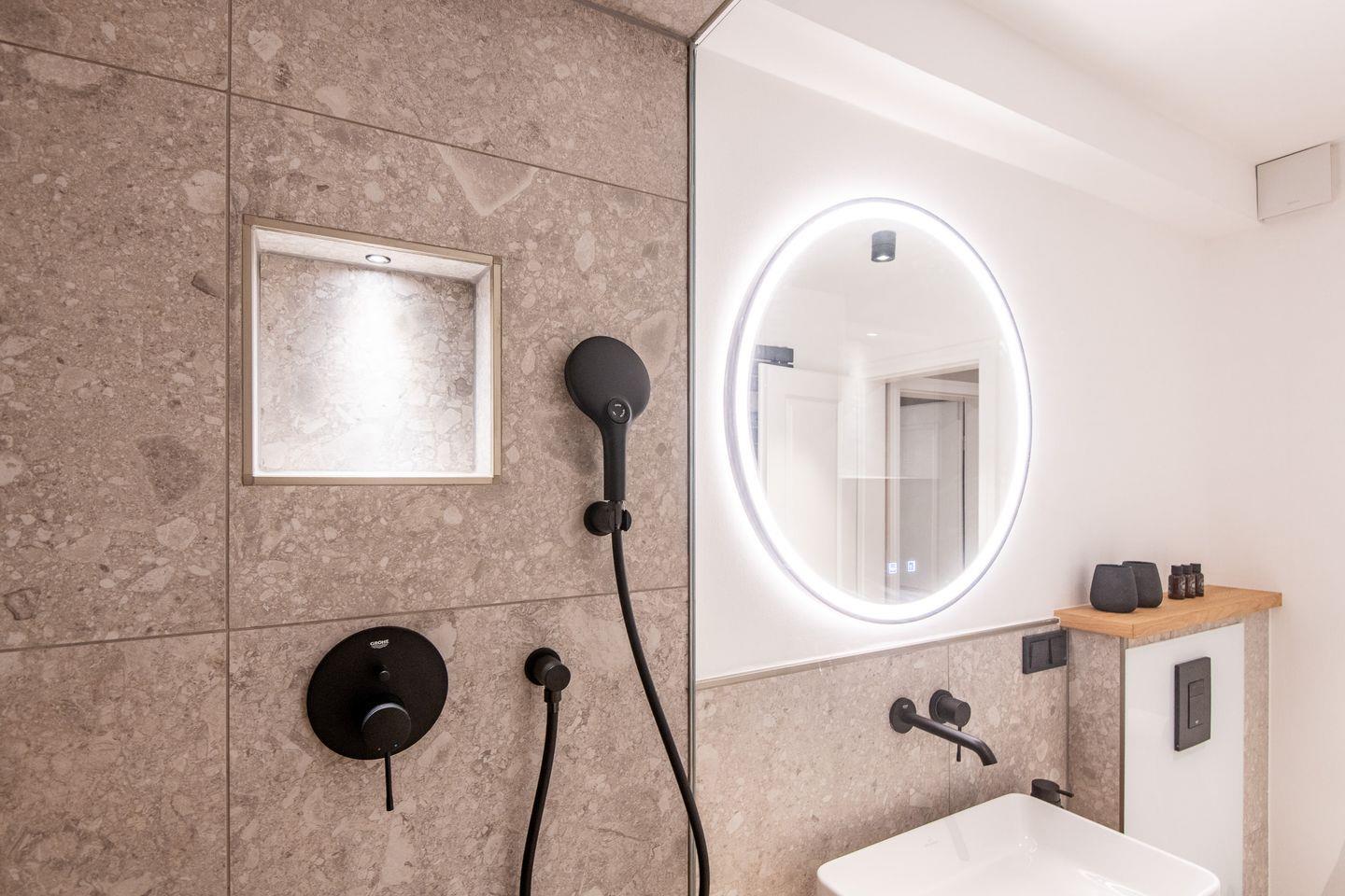Das moderne Badezimmer ist mit einer komfortablen Dusche ausgestattet und ein Gäste-WC sorgt zusätzlich für Komfort. Highlight ist der gemeinschaftlich nutzbare Wellnessbereich mit Sauna und Fitnessgeräten, der Ihnen pure Entspannung bietet.