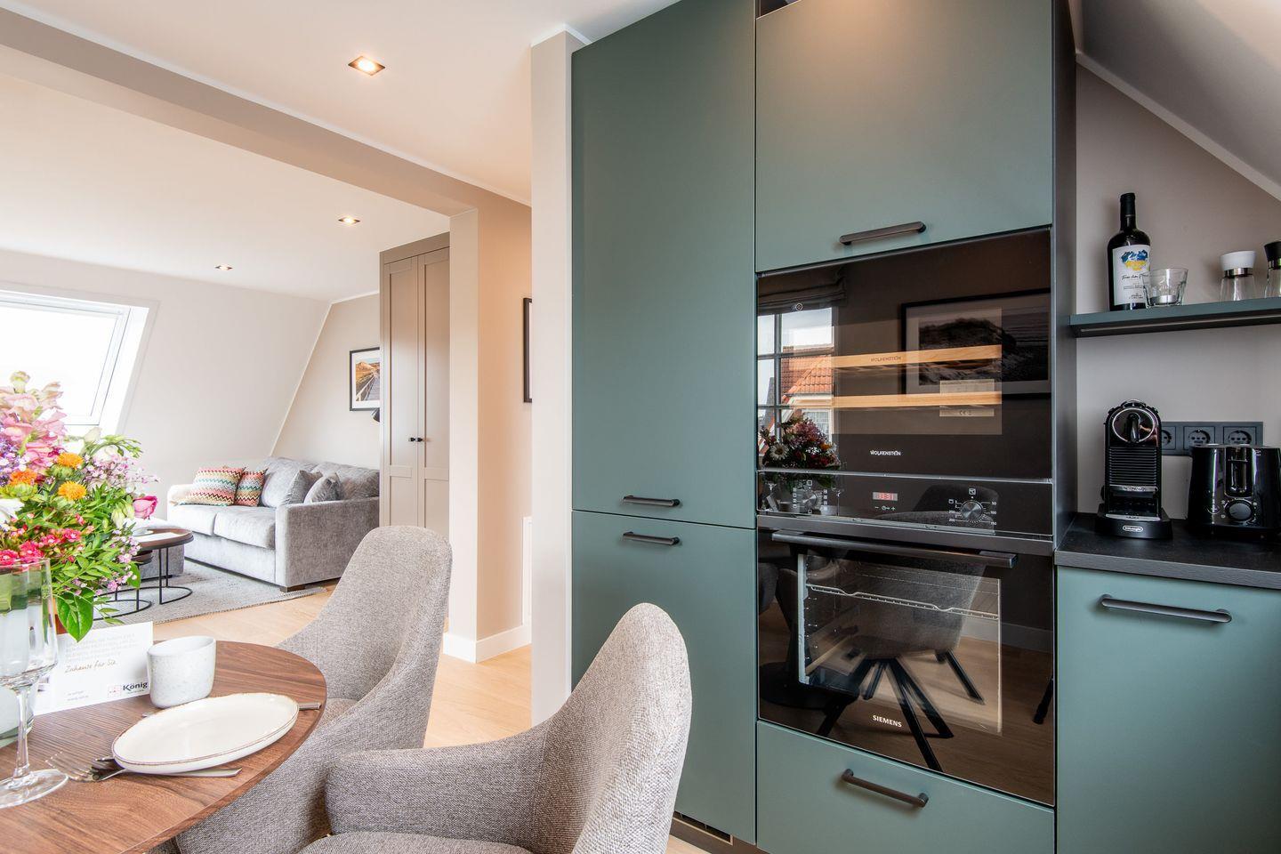 Die offene Küche ist modern und vollständig ausgestattet, sodass Sie Ihre Lieblingsgerichte mit Leichtigkeit zubereiten können. Hier fehlt es an nichts, um Ihren Aufenthalt rundum angenehm zu gestalten. Ein Weinschrank kühlt Ihre Lieblingsgetränke auf die perfekte Trinktemperatur.