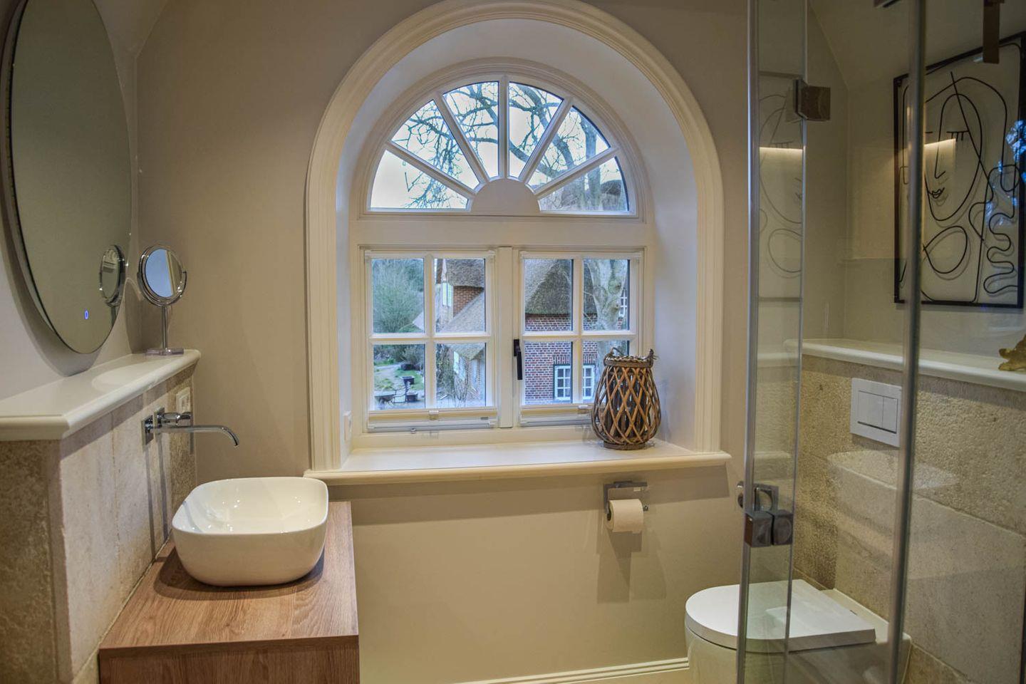 Mit drei Schlafzimmern, drei hochwertigen Bädern, edlem Naturstein, einer Wohnküche mit allem Drum und Dran und ausgesuchten Materialien – von feinen Stoffen bis zu handverlegten Holzdielen – wurde hier jedes Detail mit Bedacht und viel Liebe zur nordischen Lebensart gewählt.