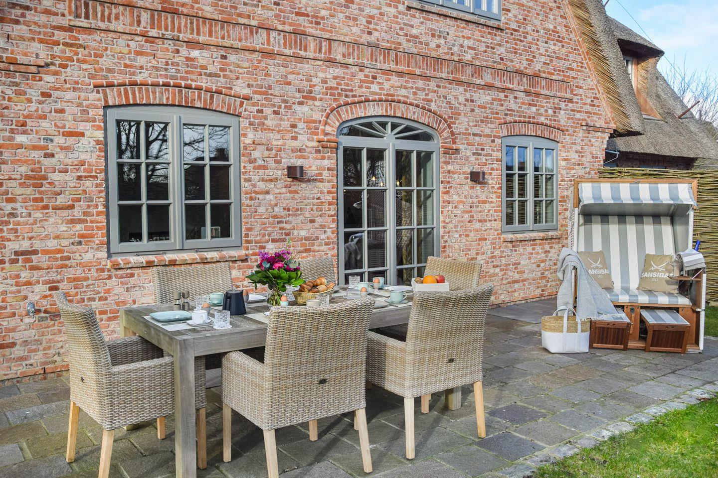 Exklusives Reetdachhaus auf Sylt mit Sauna, Kamin und großem Garten für erholsame Auszeiten.
