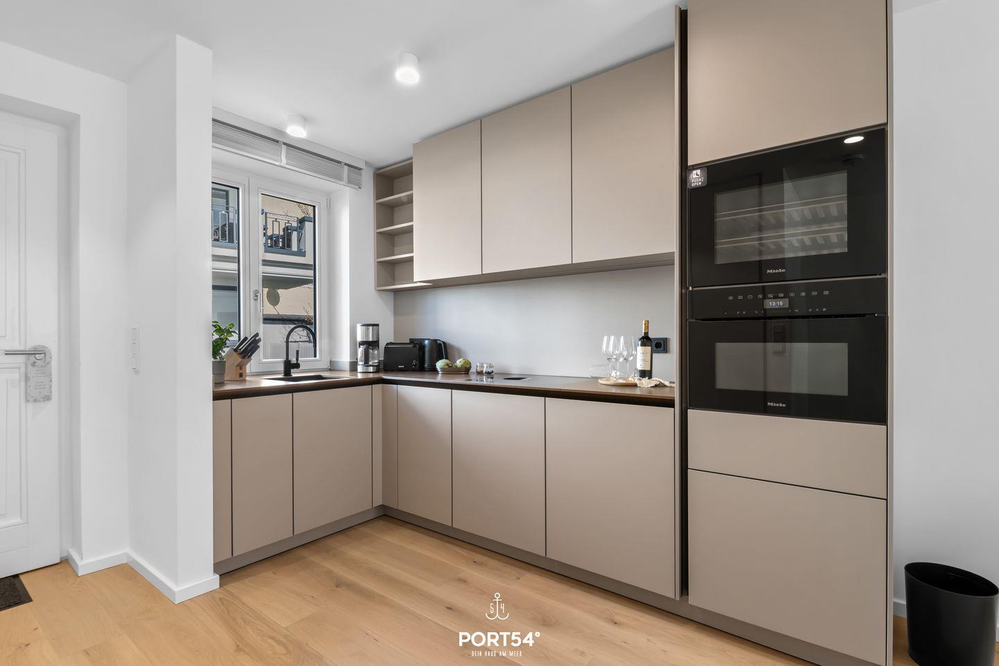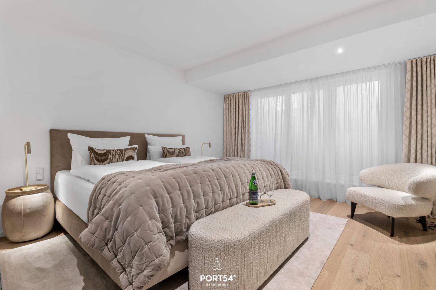 Das Luxus Maisonette Apartment bietet Platz für bis zu vier Personen im Erdgeschoss und Souterrain. Im Erdgeschoss erwartet Sie der offene Wohnbereich mit einem gemütlichem Sofa und großem Flachbild-TV, sowie die voll ausgestattete Küche und ein Gäste WC. Im Souterrain befinden sich die zwei Schlafzimmer welche jeweils mit einem großen Doppelboxspringbett (200x200 cm), einem Flachbild-TV und Verdunkelungsmöglichkeiten ausgestattet sind, perfekt für Ihre Nachtruhe. Dort finden Sie auch das exklusive Master-Bad mit großer Regendusche, zwei Waschbecken, Föhn und WC.