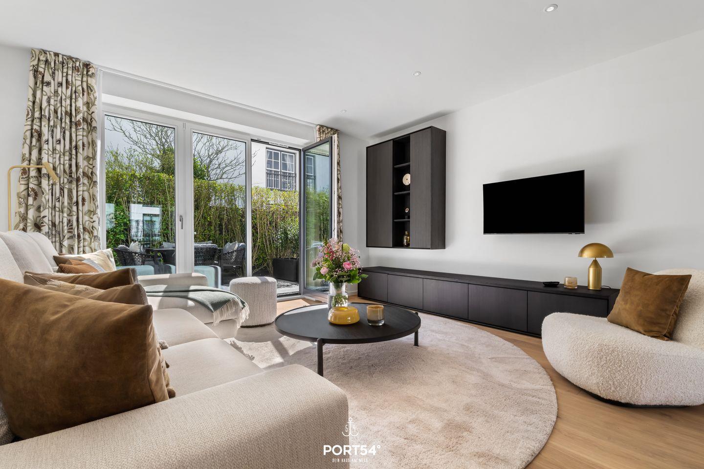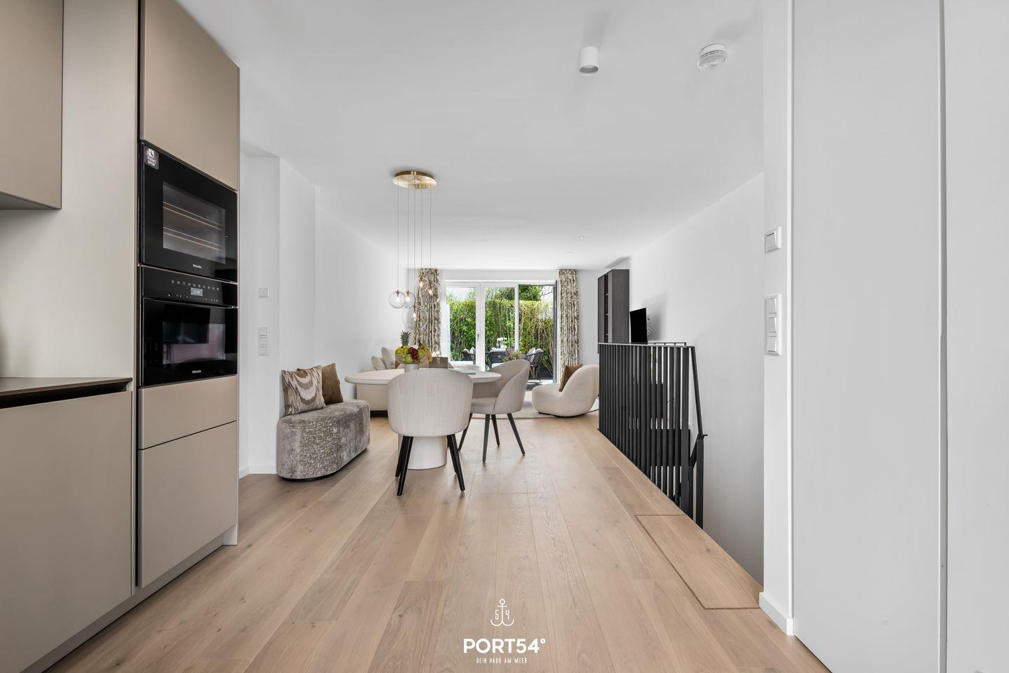 Großer Wohn- und Essbereich mit Sofa und Sessel sowie Esstisch mit vier Stühlen. Hochwertig eingerichtete, offene Küche mit Kühlschrank, Backofen und Herd. Zwei Schlafzimmer im Souterrain jeweils mit Doppelbett (200 x 200cm) und großem Schrank. Exklusives Master-Bad im Souterrain mit zwei Waschbecken, großer Regendusche und WC. Luxuriöse Holzterrasse mit Gartenmöbeln. Gäste-WC im Erdgeschoss.