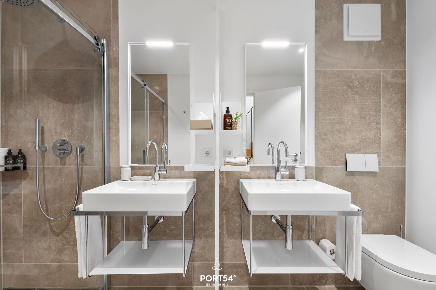 Das Luxus Maisonette Apartment bietet Platz für bis zu vier Personen im Erdgeschoss und Souterrain. Im Erdgeschoss erwartet Sie der offene Wohnbereich mit einem gemütlichem Sofa und großem Flachbild-TV, sowie die voll ausgestattete Küche und ein Gäste WC. Im Souterrain befinden sich die zwei Schlafzimmer welche jeweils mit einem großen Doppelboxspringbett (200x200 cm), einem Flachbild-TV und Verdunkelungsmöglichkeiten ausgestattet sind, perfekt für Ihre Nachtruhe. Dort finden Sie auch das exklusive Master-Bad mit großer Regendusche, zwei Waschbecken, Föhn und WC.