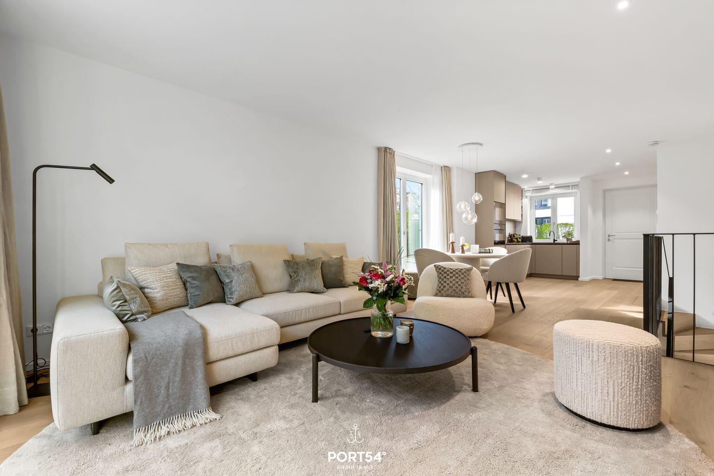 Großer Wohn- und Essbereich mit Sofa und Sessel sowie Esstisch mit vier Stühlen. Hochwertig eingerichtete, offene Küche mit Kühlschrank, Backofen und Herd. Zwei Schlafzimmer im Souterrain jeweils mit Doppelbett (200 x 200cm) und großem Schrank. Exklusives Master-Bad im Souterrain mit zwei Waschbecken, großer Regendusche und WC. Luxuriöse Holzterrasse mit Gartenmöbeln. Gäste-WC im Erdgeschoss.