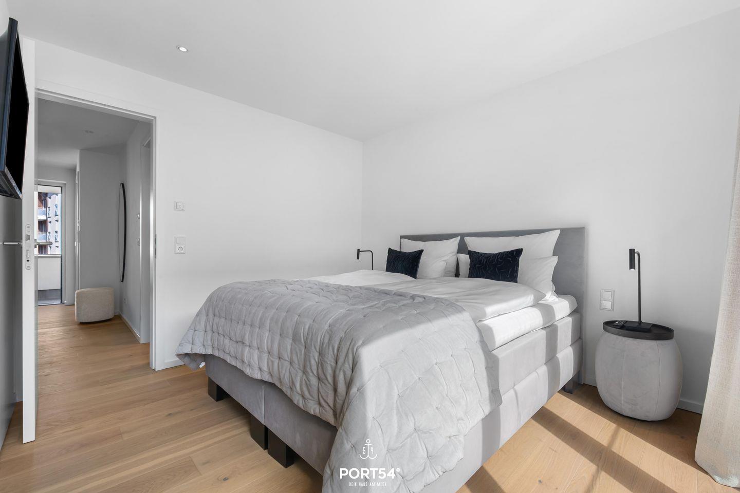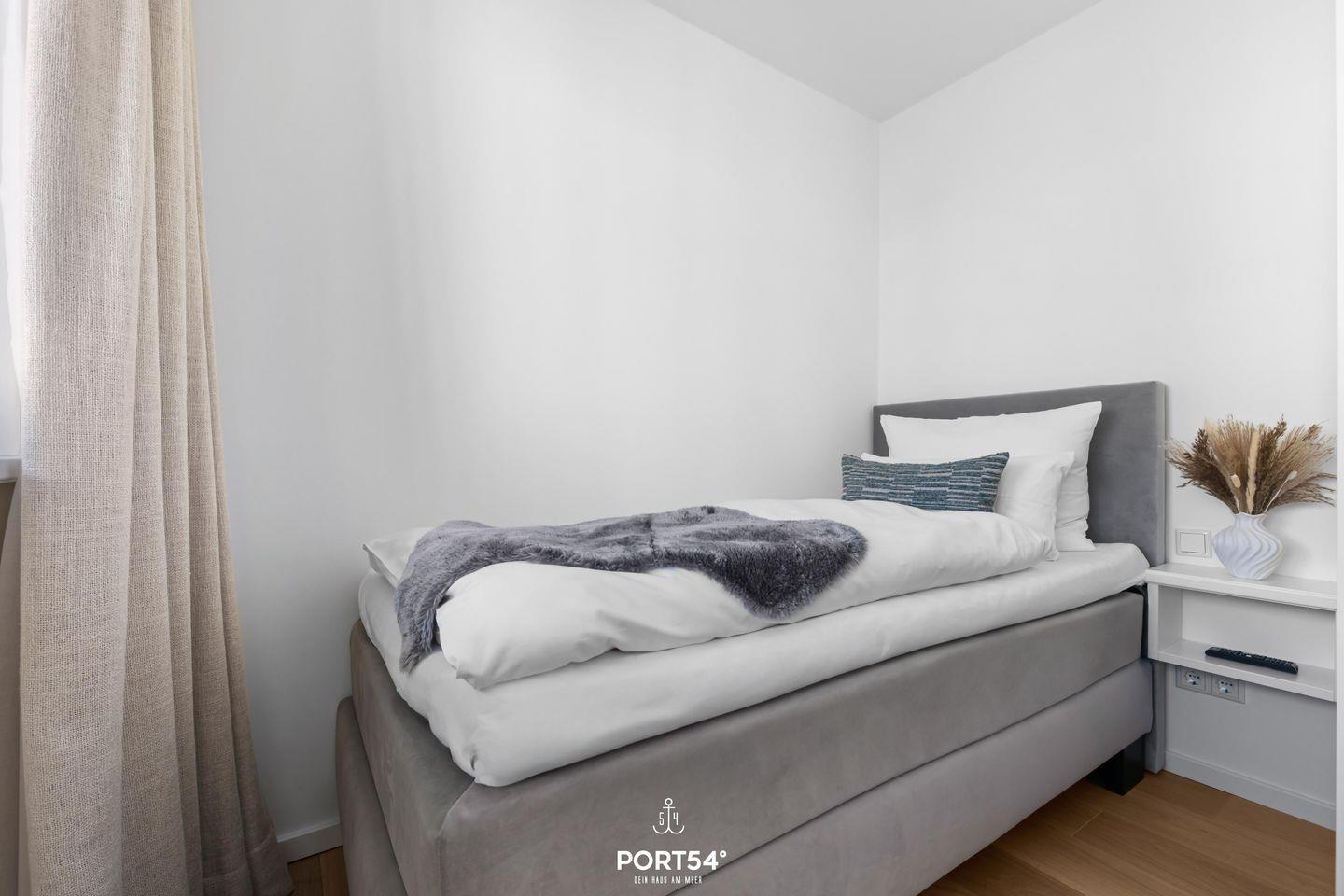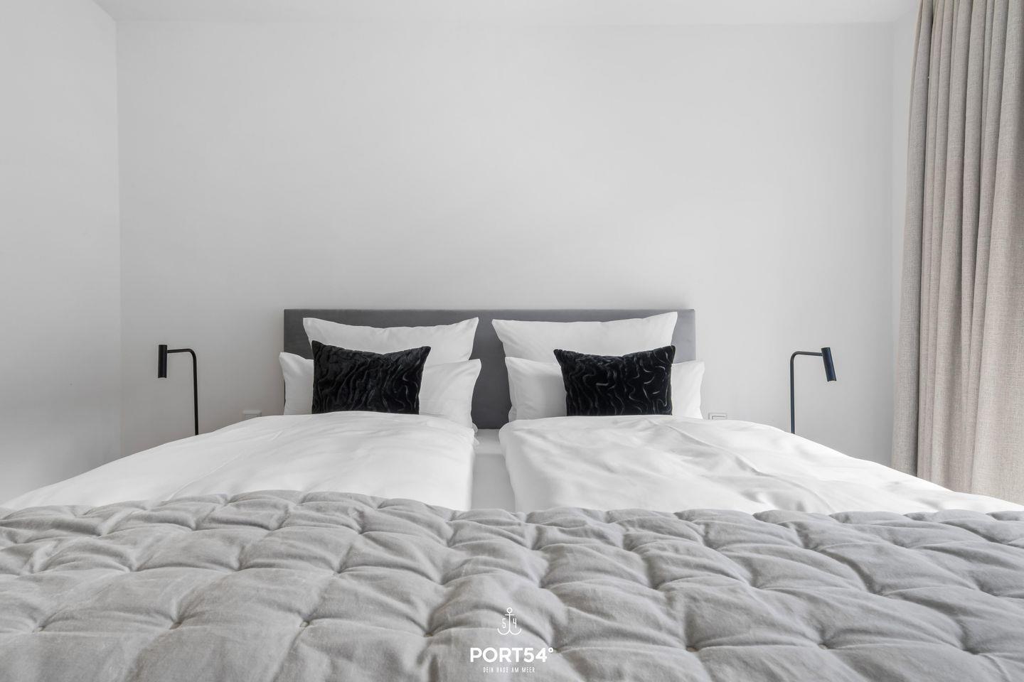 Das Luxus-Maisonette-Apartment bietet im 1. und 2. Obergeschoss Platz für bis zu drei Personen. Auf der ersten Etage erwarten dich die beiden Schlafzimmer – eines mit einem Doppelbett und eines mit Einzelbett, Flachbild-TV und Verdunkelungsmöglichkeiten, perfekt für deine Nachtruhe. Außerdem findest du auf der Etage das Master-Bad mit Doppelwaschbecken, Regendusche, Föhn und WC. Im zweiten Obergeschoss befindet sich der offene Wohn- und Essbereich mit voll ausgestatteter Küche, Balkon und Zugang zur großen Dachterrasse. Hier hast du genug Platz, um die frische Nordseeluft auf dem Dach zu genießen.