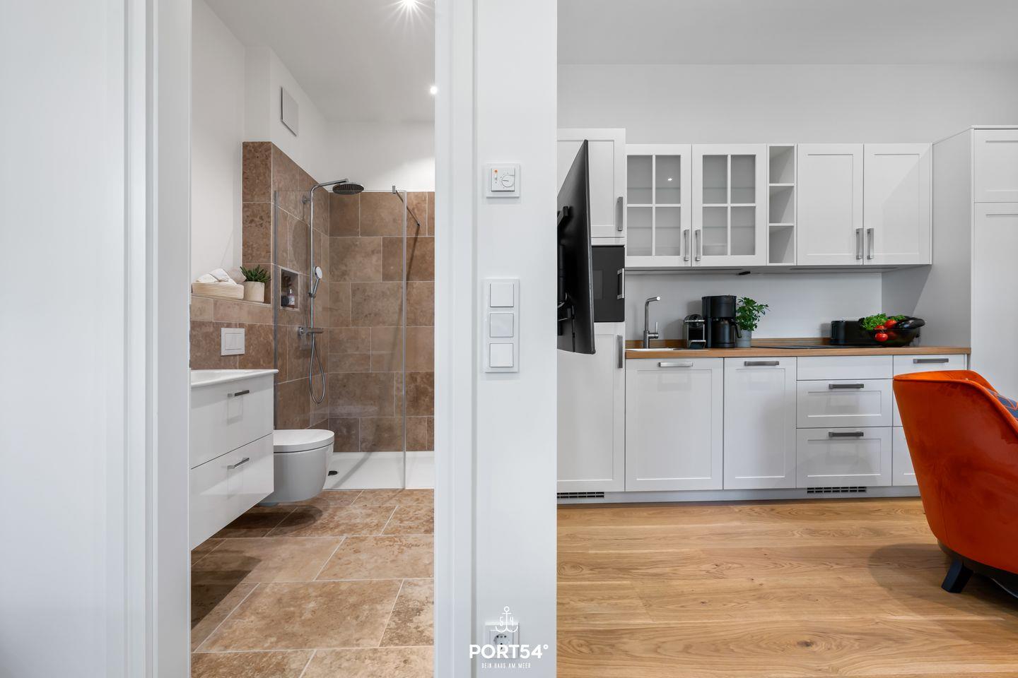 Ein besonderes Highlight sind die bodengleiche Dusche und die Fußbodenheizung im Badezimmer, die für zusätzlichen Komfort sorgen.
