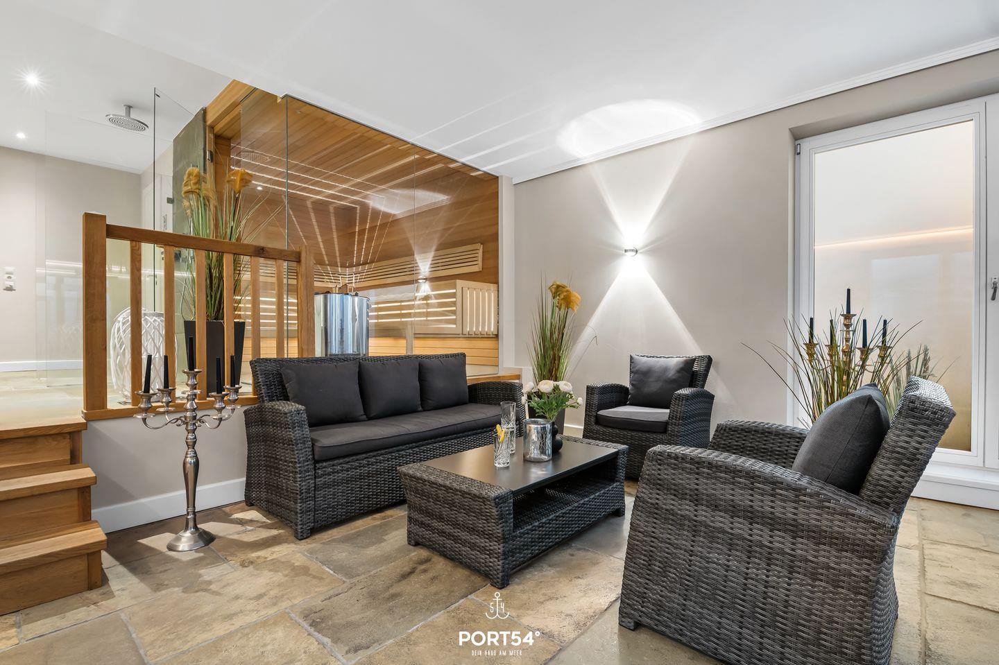 Luxushaushälfte unter Reet mit Garten, Sauna und Fitness