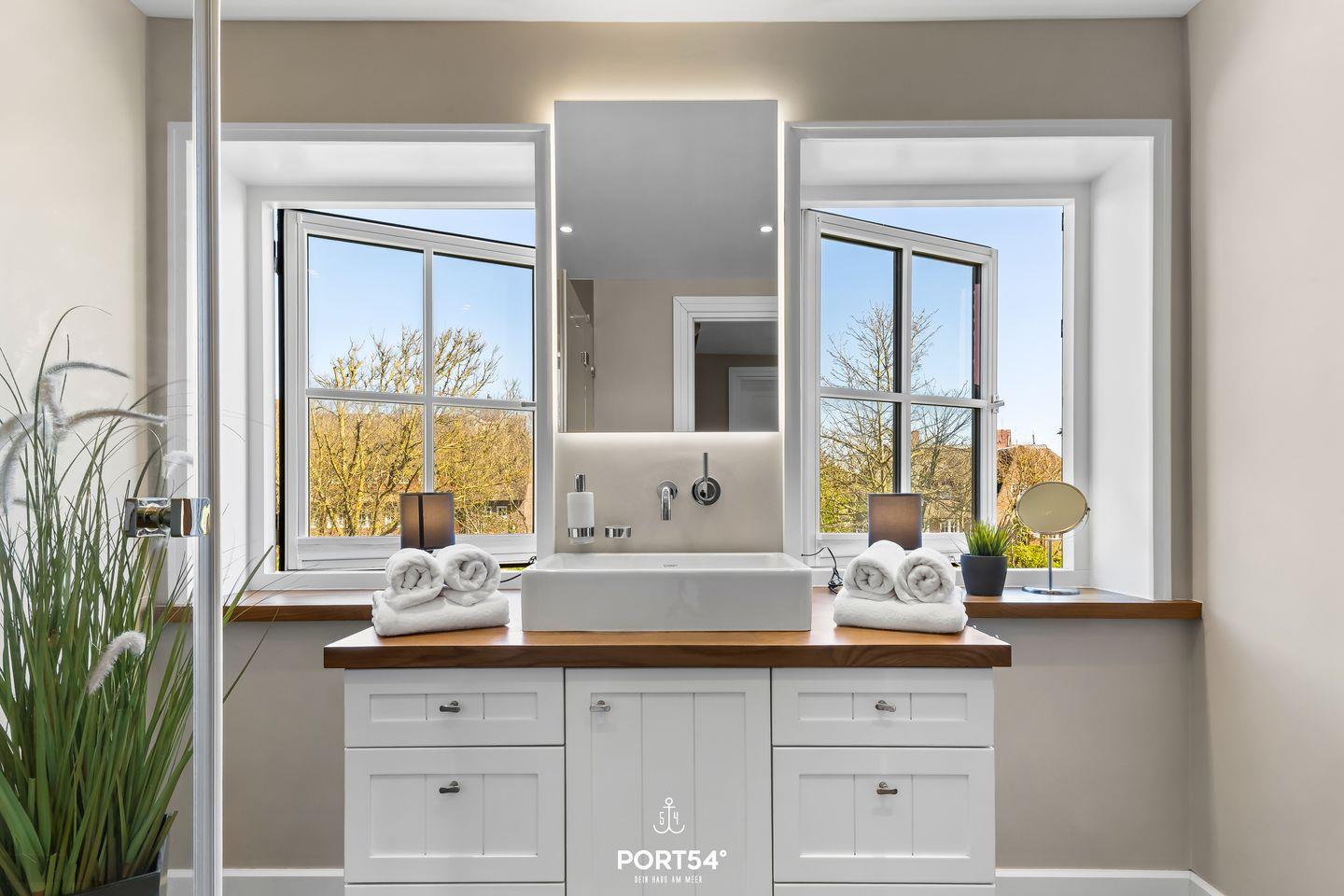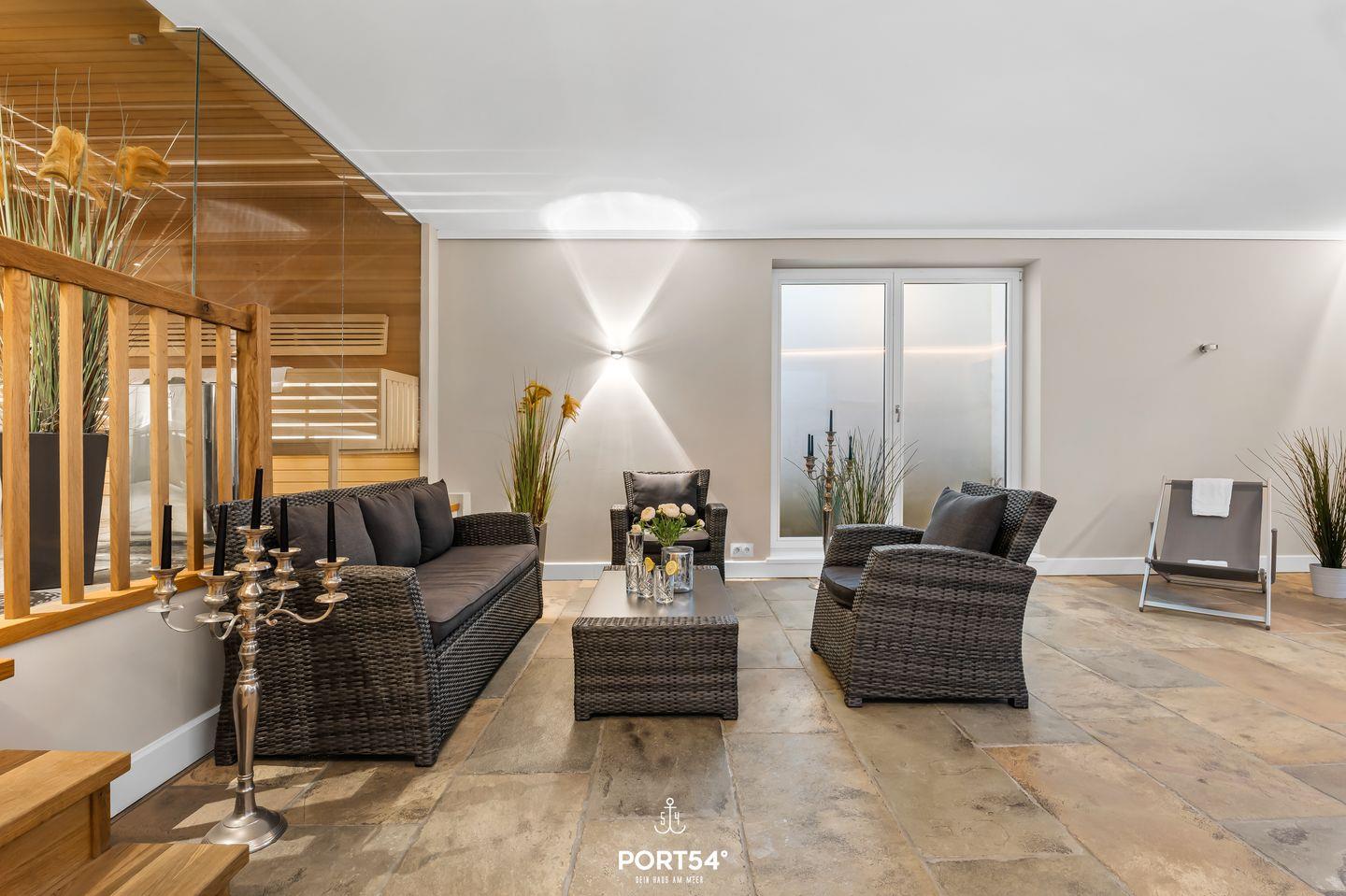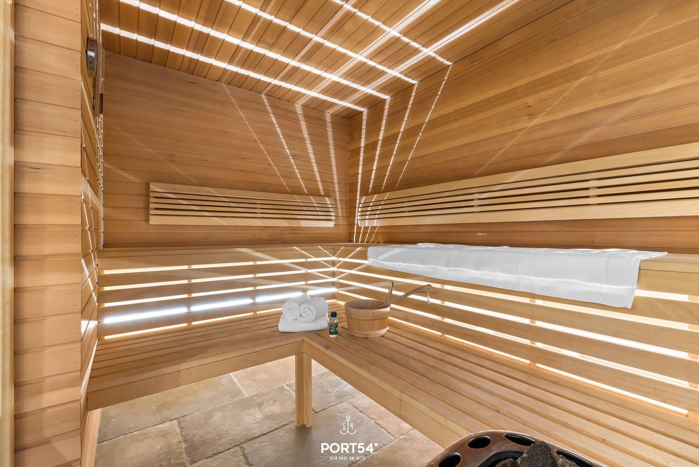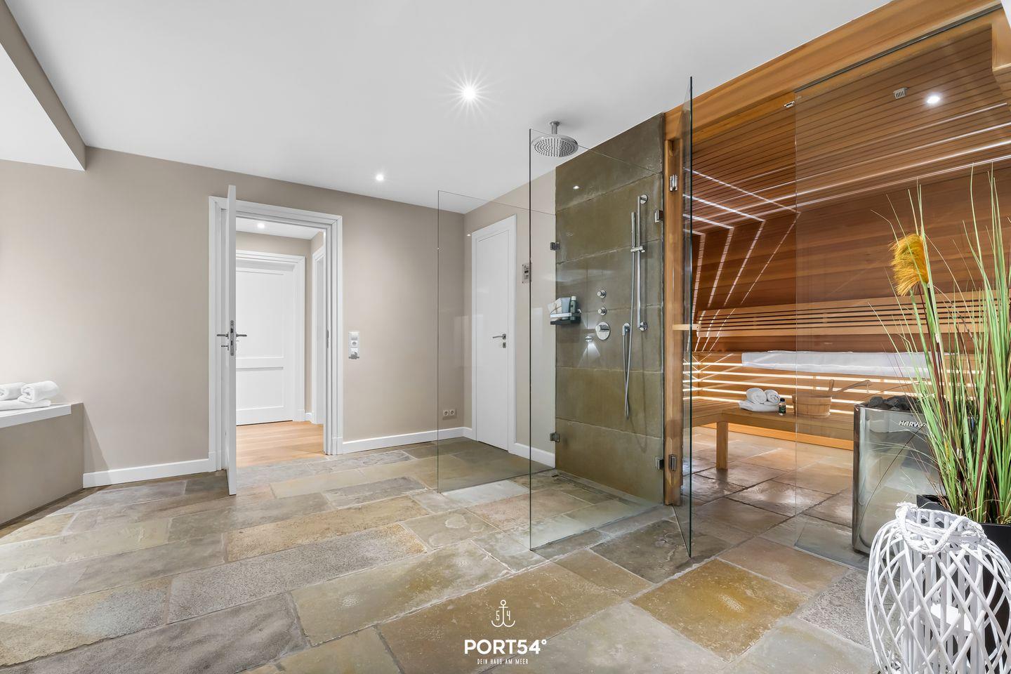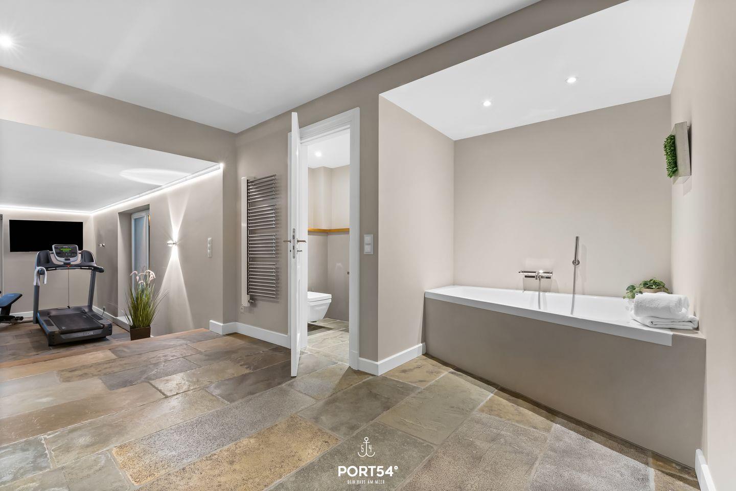 Die 2 modernen Bäder mit WC, Dusche, Badewanne und großem Waschtisch bieten dir Komfort und genügend Platz. Unser Lieblingsplatz ist die Finnische Sauna mit einem Ruhebereich zum Entspannen. Wer auch im Urlaub aktiv bleiben möchte, kann das Laufband nutzen und sich fit halten.
