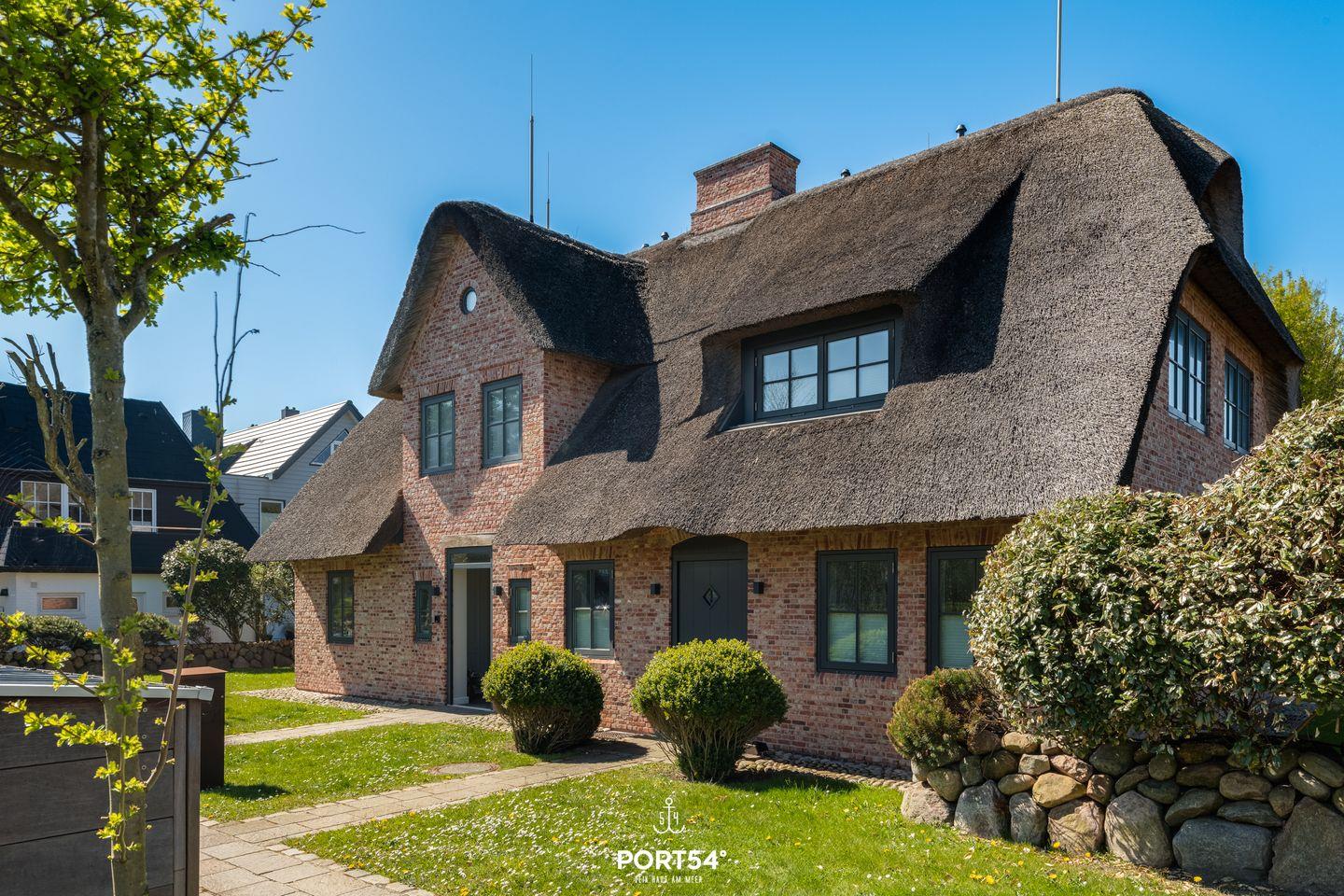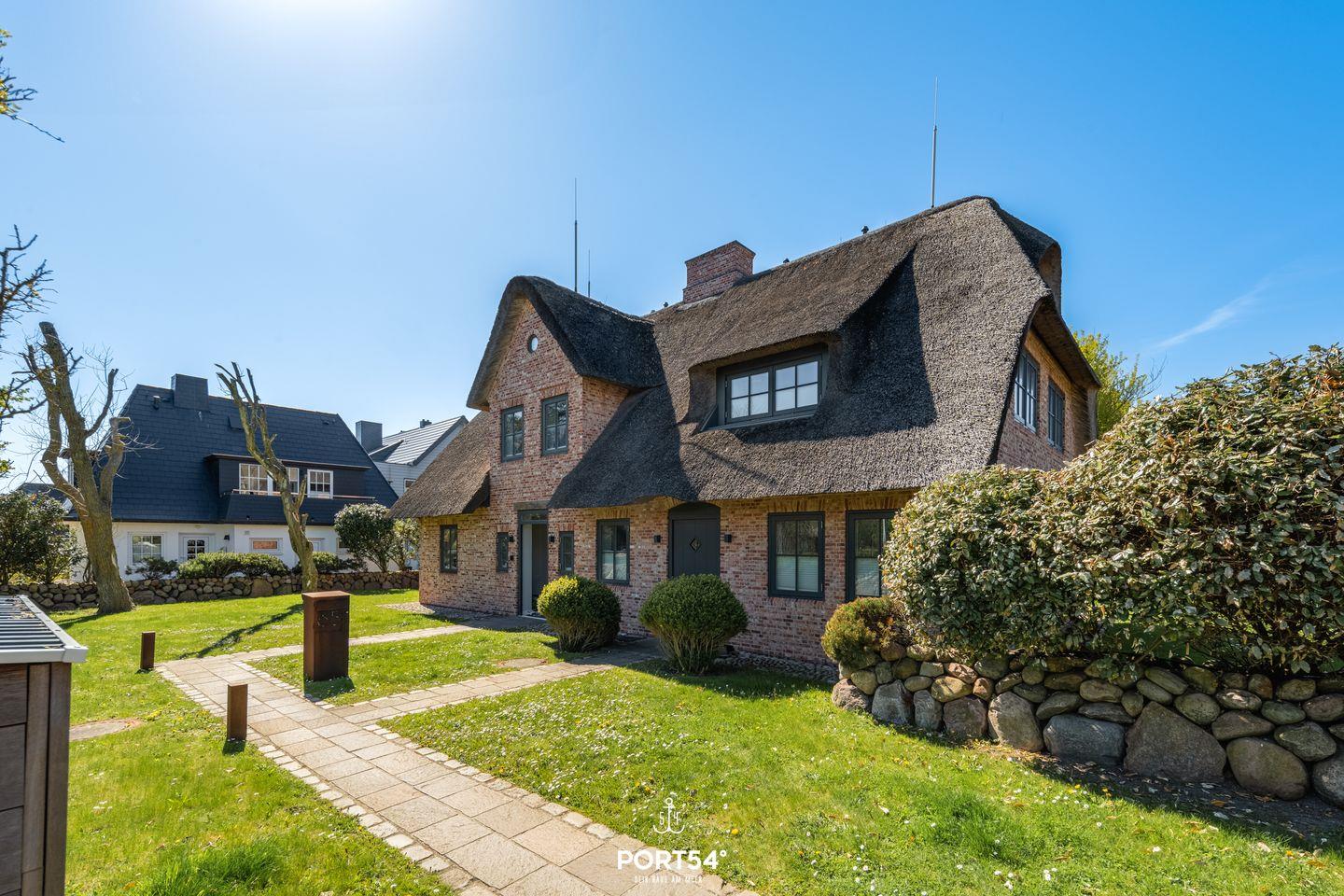 Luxushaus Sylt Royal in Westerland: Reetdach, Sauna, Fitness, Garten, nur 300 m vom Strand entfernt.
