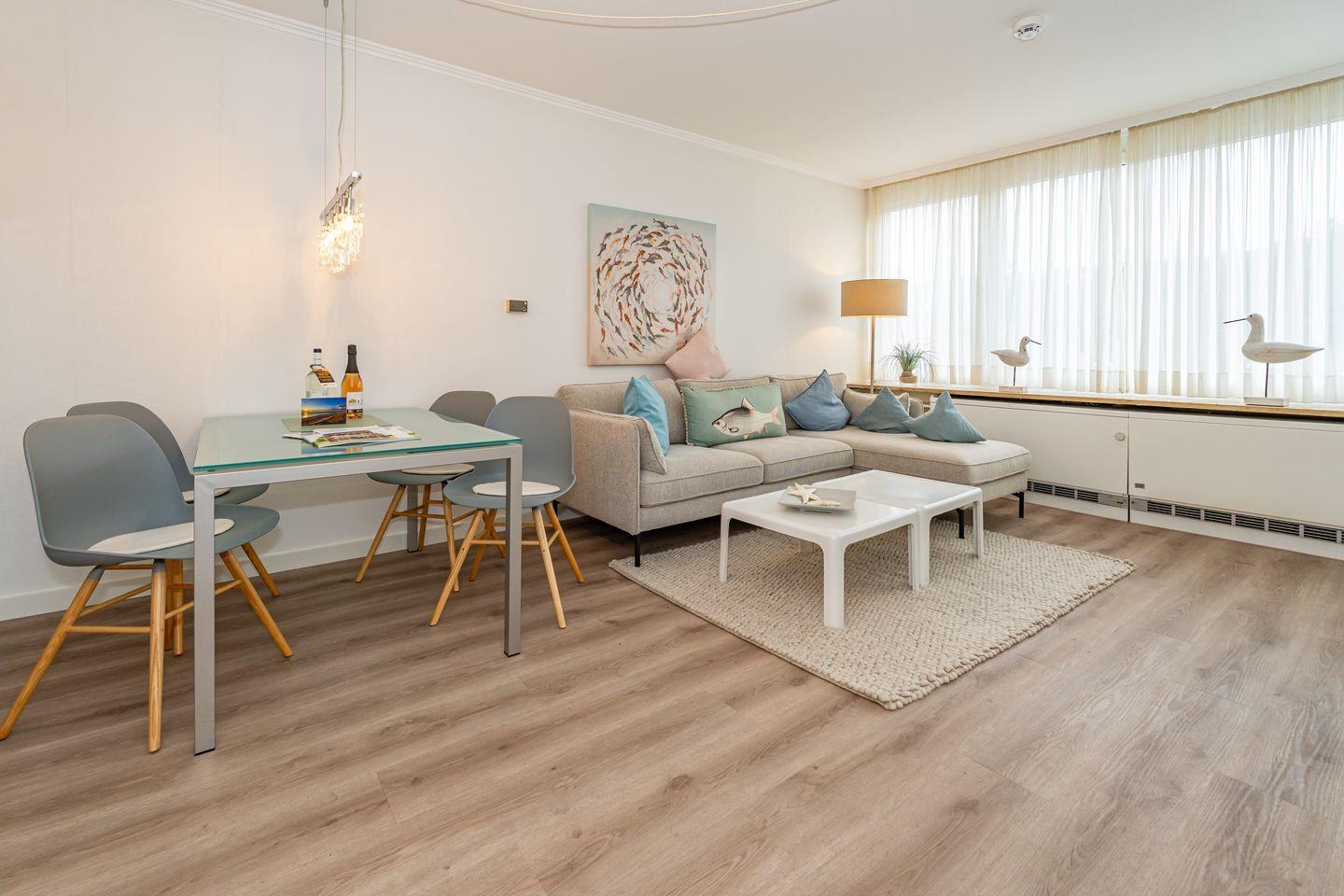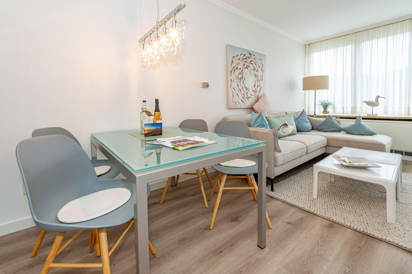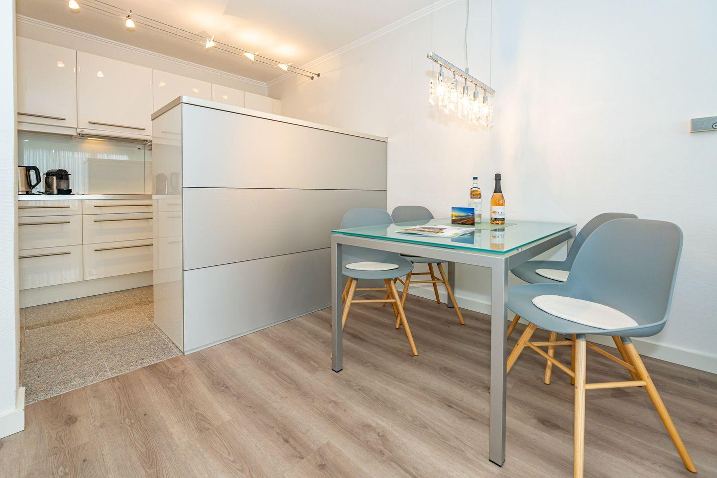 Komfortable 48 m² Ferienwohnung auf Sylt mit Balkon, moderner Küche und privatem Parkplatz, ideal für 2 Personen.