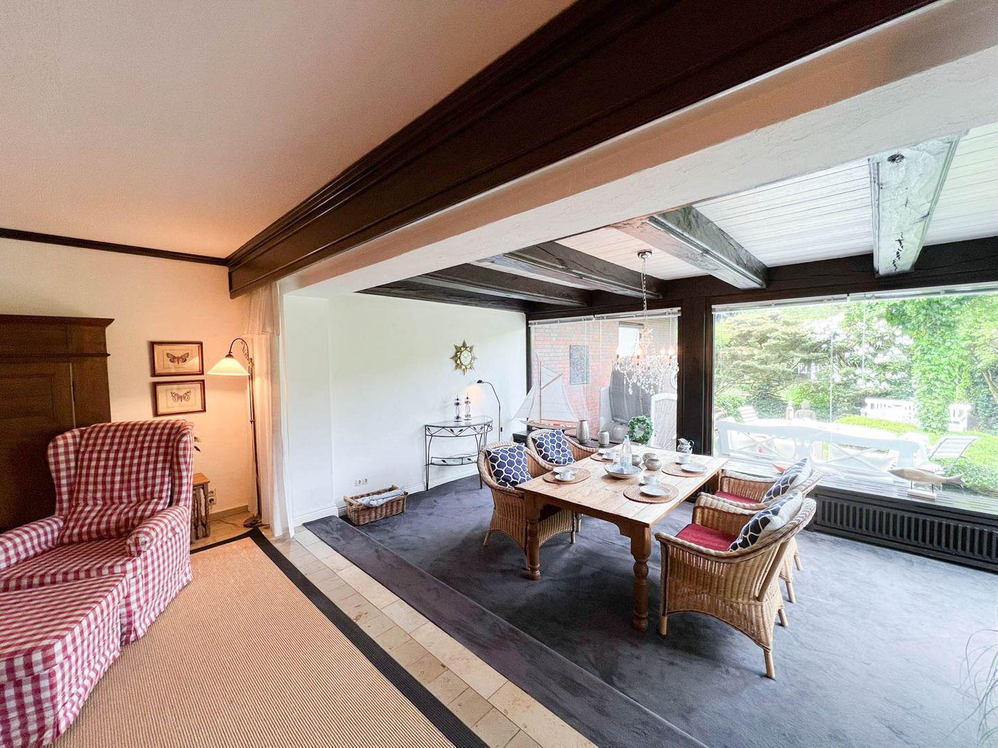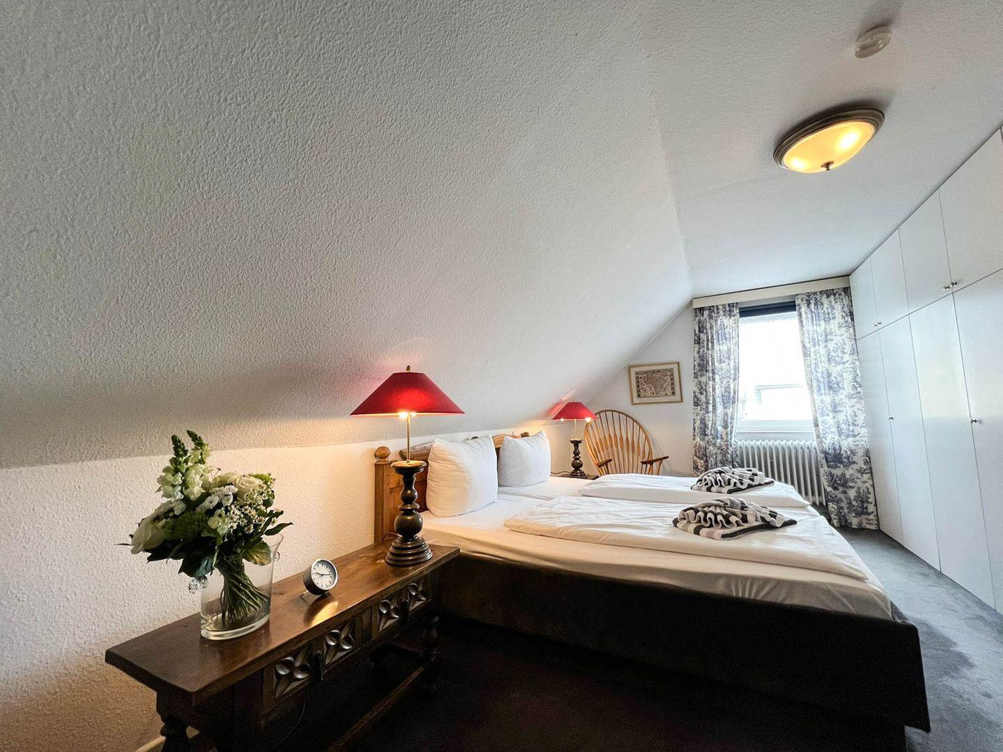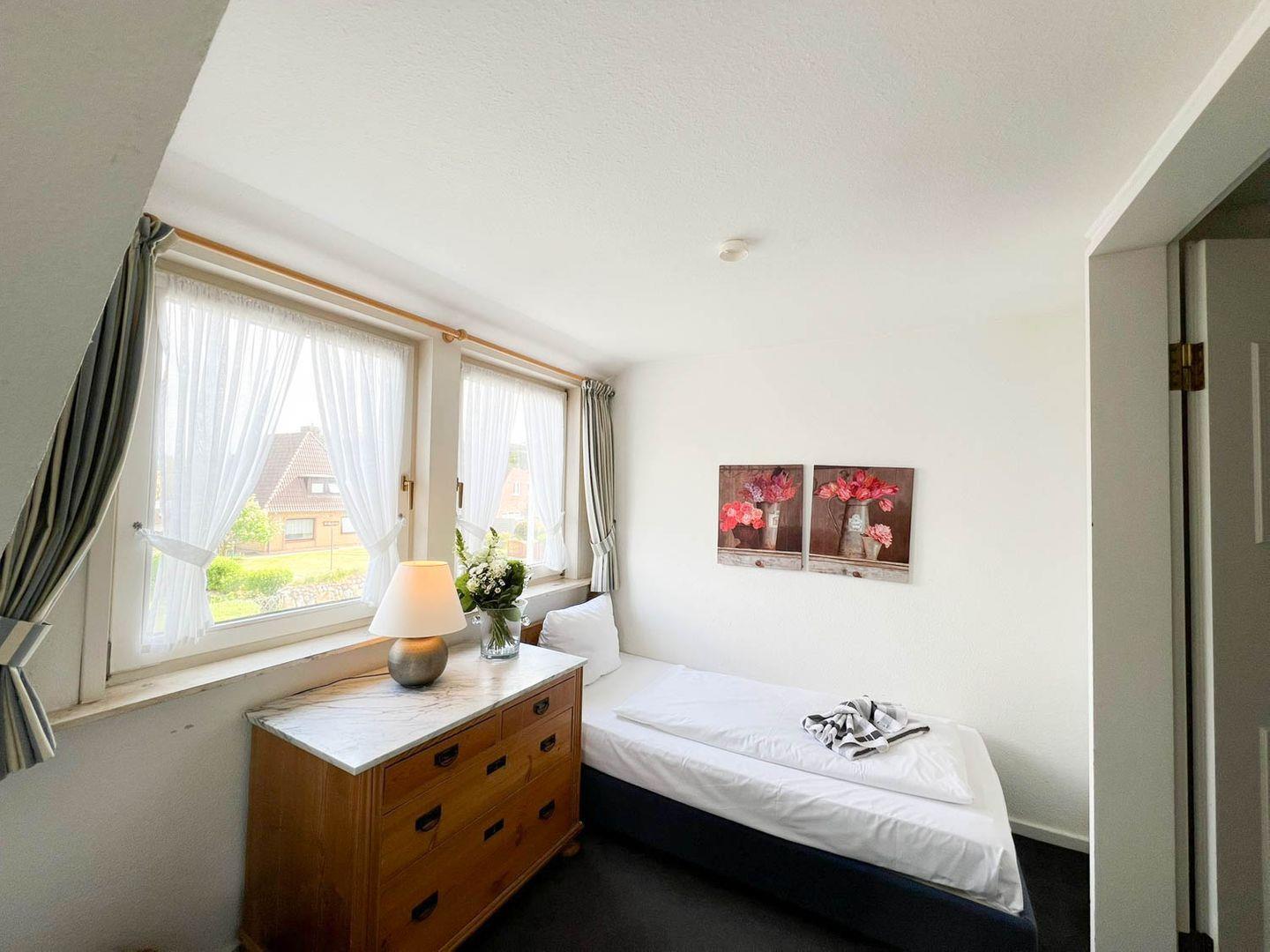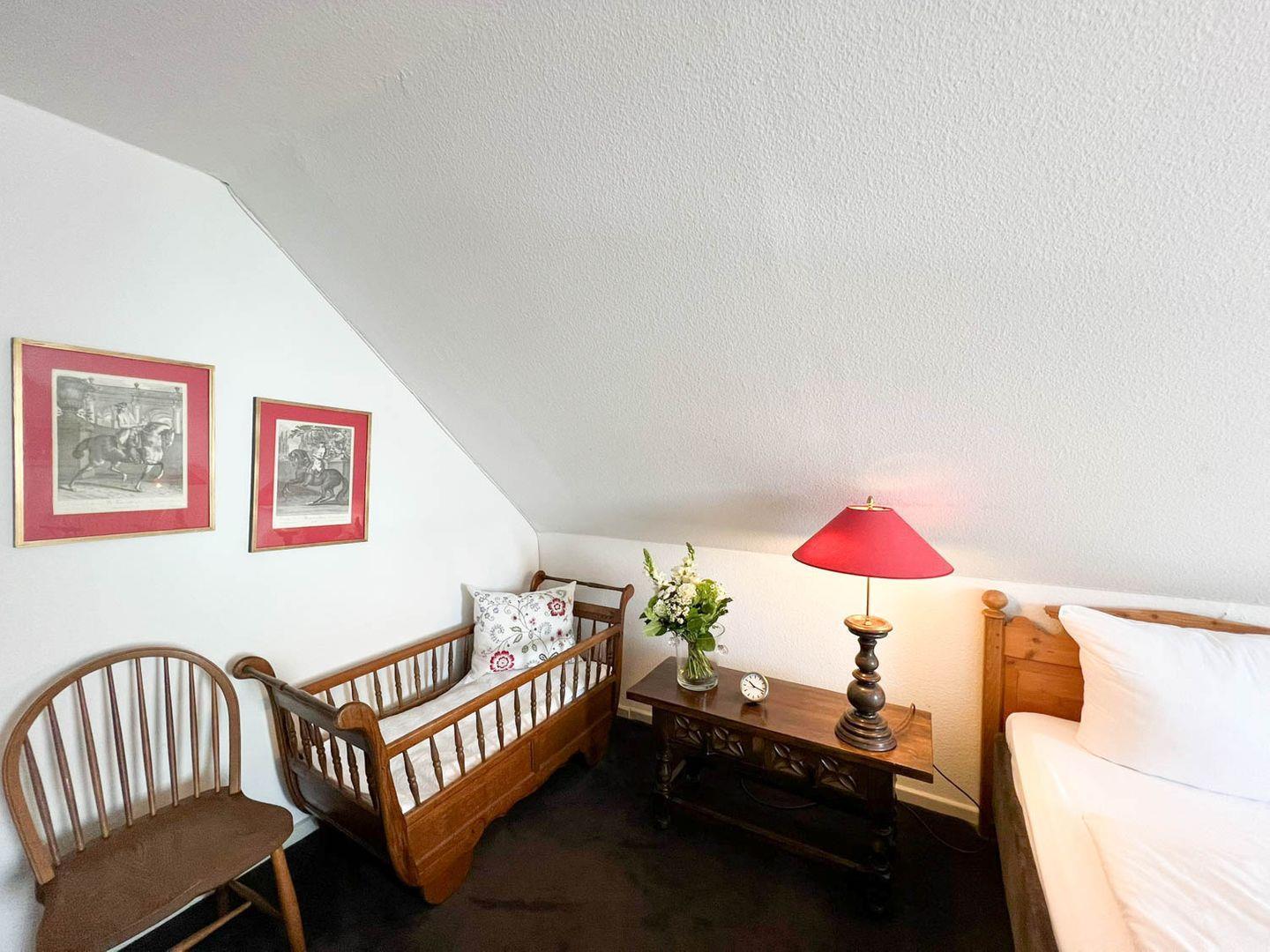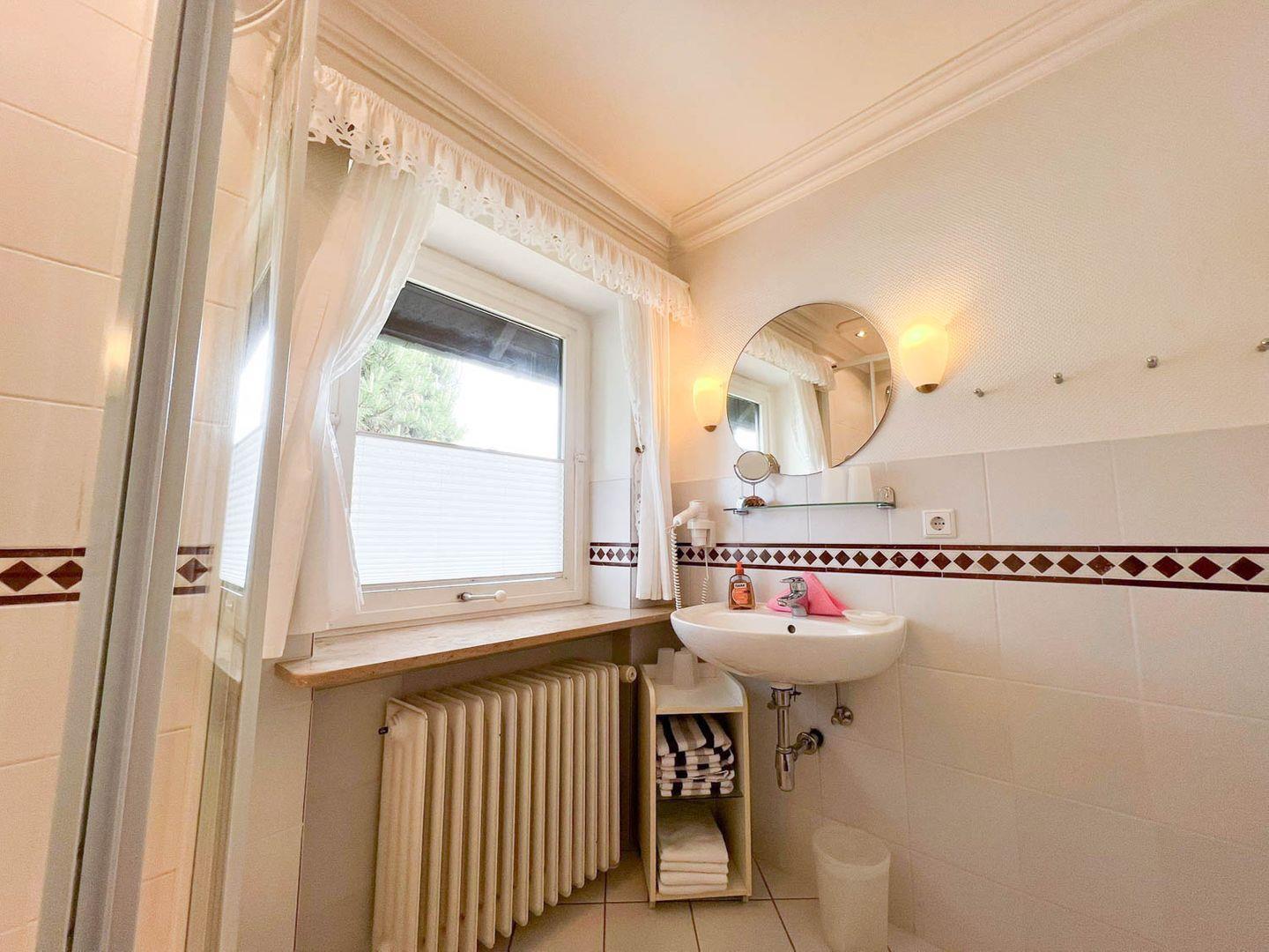 Neben einem großen Wohnraum mit Couch, Sesseln, Schrank, Esstisch, Kabel-TV, W-LAN und Südterrasse mit Strandkorb und Gartenmöbeln finden Sie im Dachgeschoss 2 Schlafzimmer mit einem Doppelbett und 2 Einzelbetten. Die Küche ist natürlich komplett eingerichtet mit Ceran-Kochfeld, Backofen, Kühlschrank, Geschirrspüler, Kaffeemaschine, Toaster und Wasserkocher. Im Erdgeschoss befindet sich unser luxuriöses und geräumiges Badezimmer.