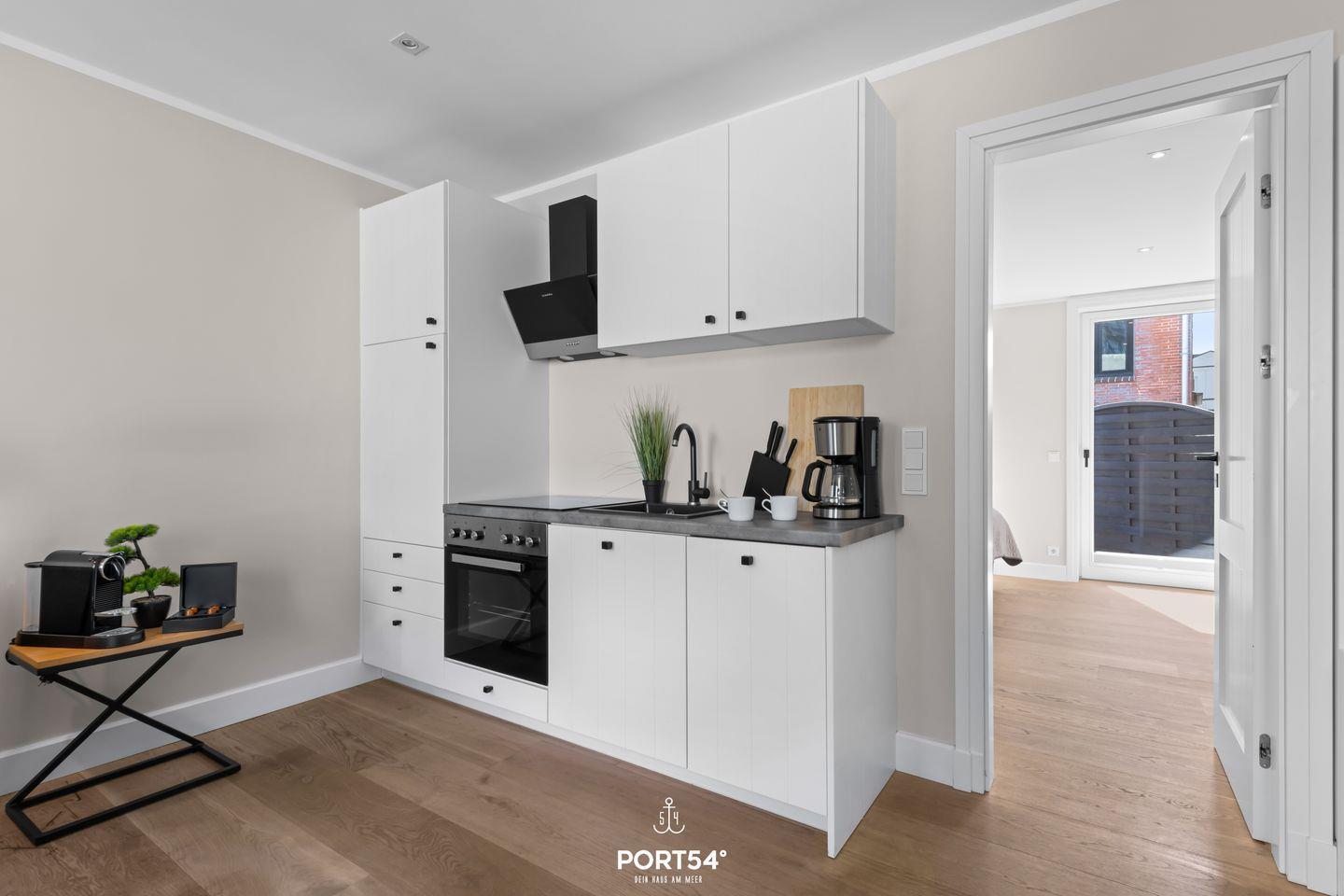 Die Wohnung überzeugt durch ihr durchdachtes Raumkonzept. Sie verfügt über ein Schlafzimmer, das mit einem gemütlichen Doppelbett ausgestattet ist, und im Wohnzimmer finden Sie eine bequeme Sofaecke, die zum Verweilen einlädt. Hier können Sie sich nach einem ereignisreichen Tag entspannen. Die Dielenböden verleihen den Räumen eine einladende Atmosphäre und tragen zum modernen Charme der Wohnung bei.